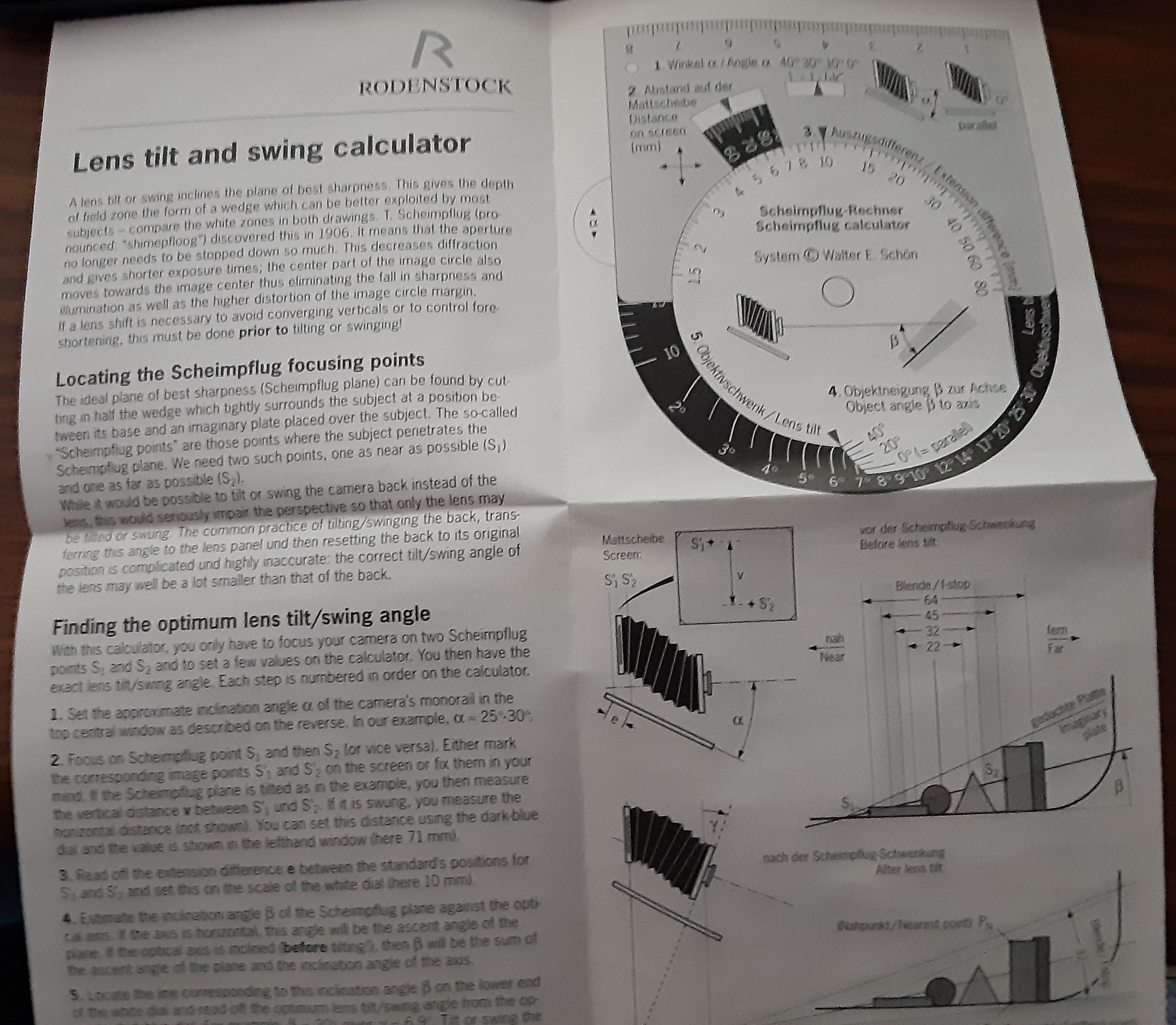 Rodenstock Depth of Field Calculator and Lens tilt and swing calculator. Has instructions . As new