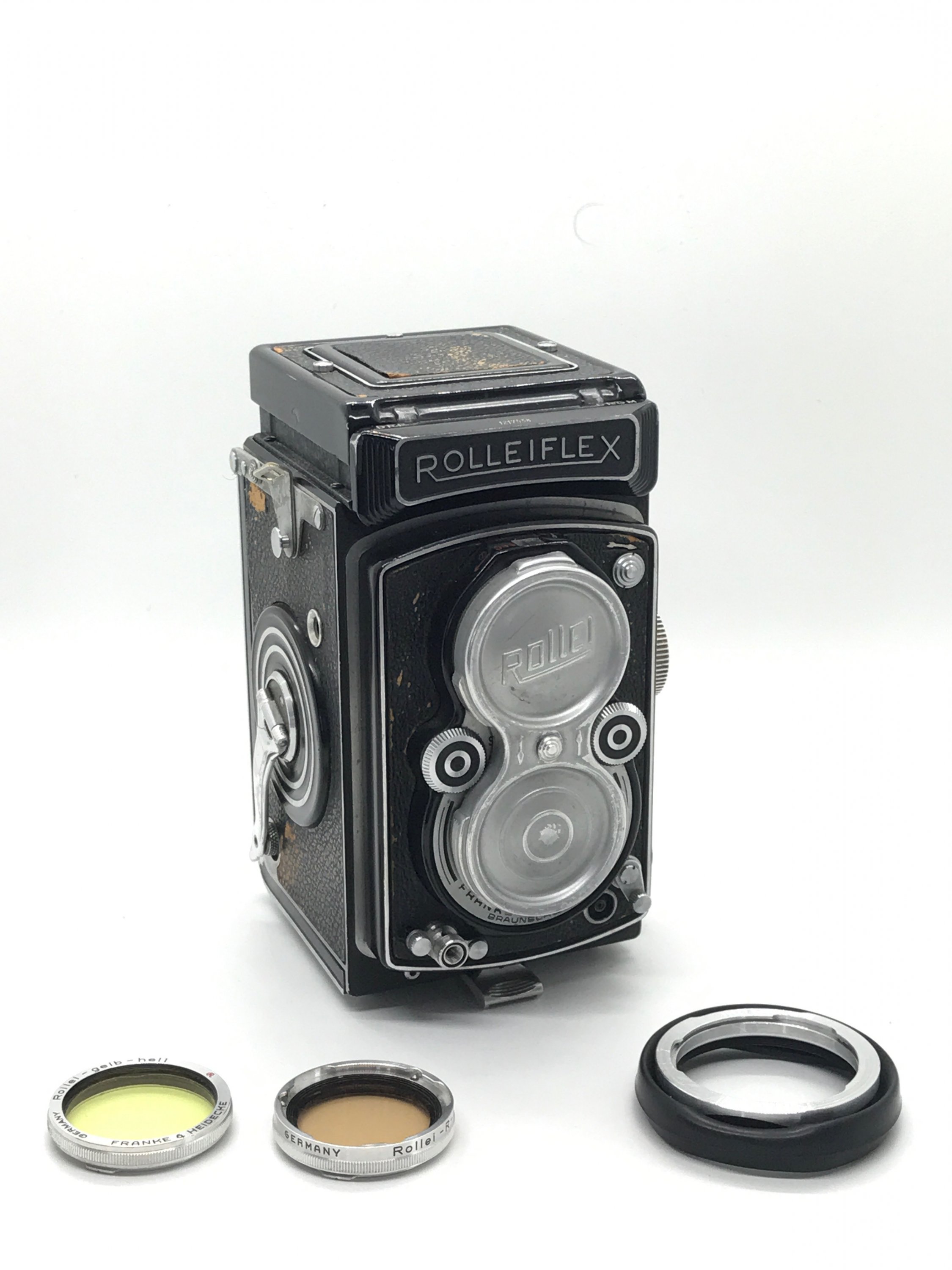 Includes the original switch-lock style rollei lens cap, a rubber folding Lens Hood (more compact and convenient than metal) and 2 filters: a Light Yellow filter for black and white and an 81a warming filter for color photography.