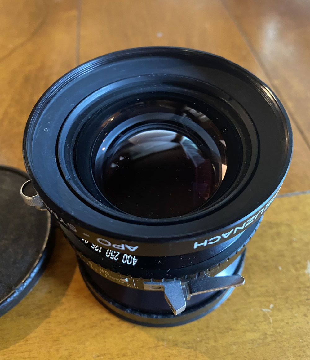 1. Schneider Apo Symmar 210mm LF lens in great condition. Optics are perfect - barrel shows only slight signs of use. Copal 1 shutter sounds perfect. Covers 5x7 easily. $250