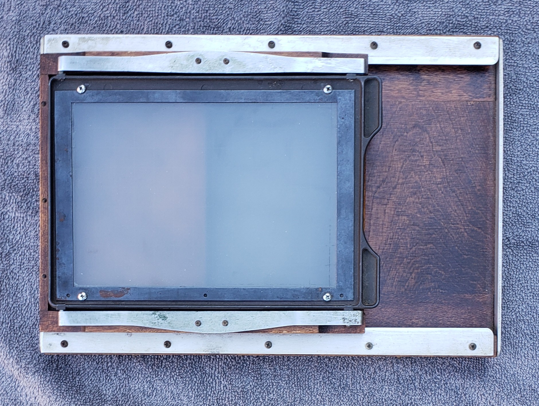 A very nice, used 5x7 Sliding Split Back for an Eastman 2D 5x7 camera.
