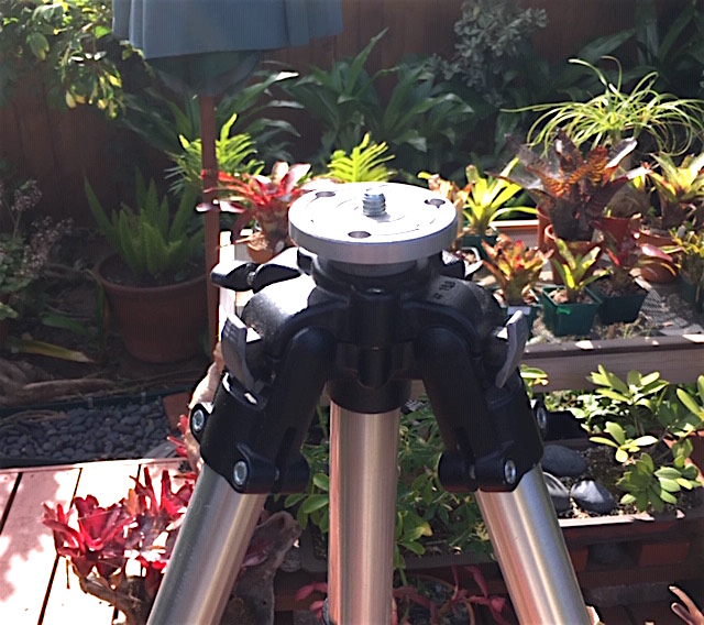 New rubber pad on tripod head platform, rubber washers updated. The specs: Weight: 5.87 lbs. Folded length: 30 1/2 inches.