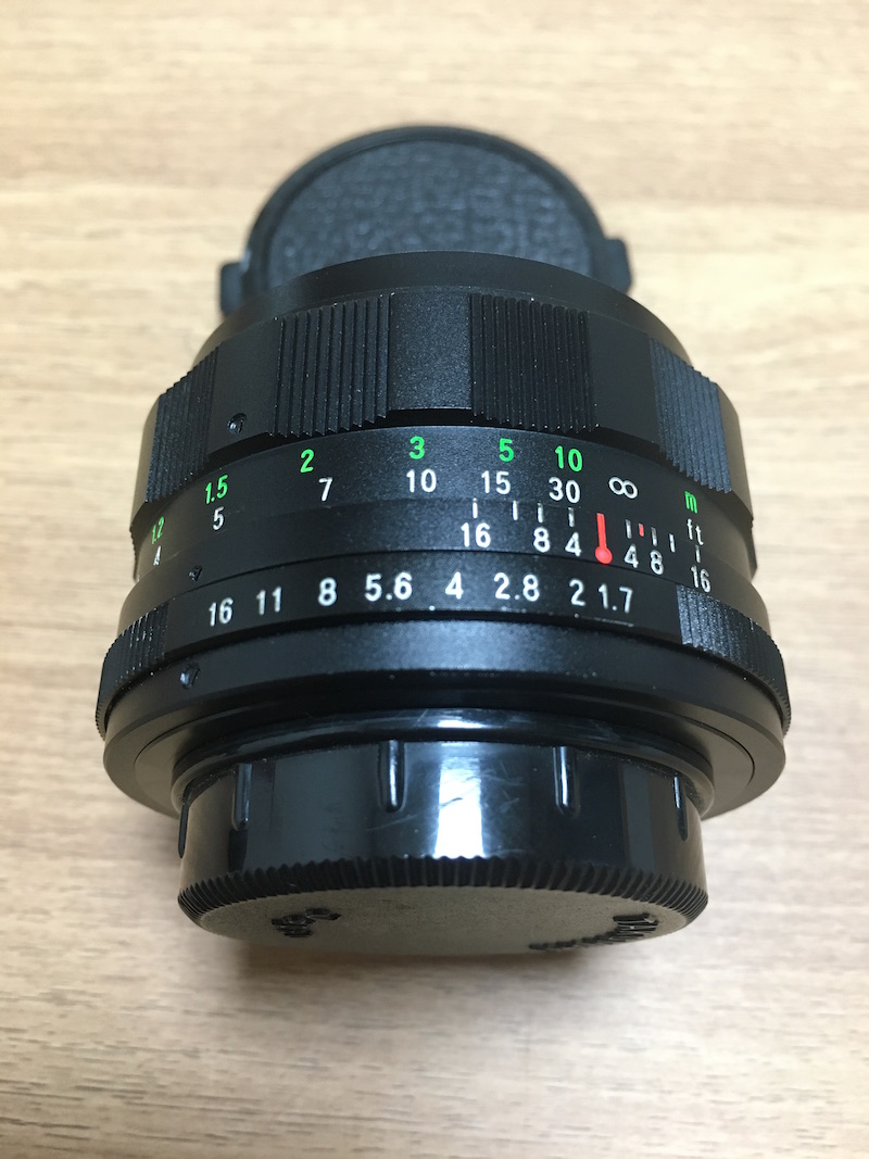 I picked up this lens during a visit to Japan a few years ago and have since used it only once as I always tend to grab other lenses with my Ricoh Singlex TLS. This lens is a beauty. It seems like it has only been used a few times as there is hardly a mark on it. Lens torque is pretty smooth. Aperture blades snap as they should. Lens glass is super-clean with a very minuscule amount of dust, but it's not even noticeable and hardly worth mentioning. Lens body shows very minimal use.