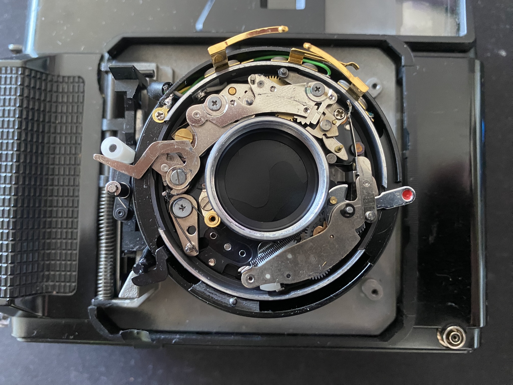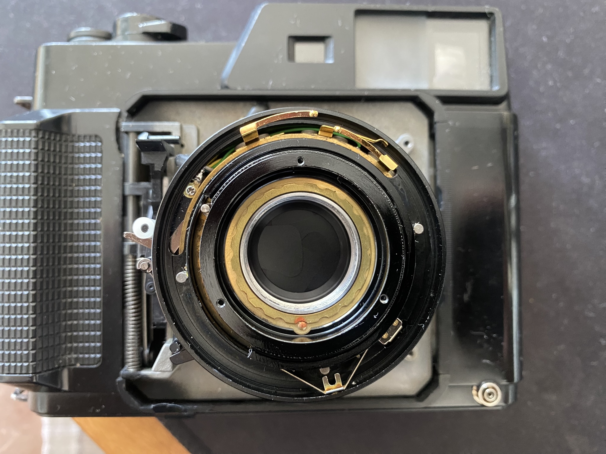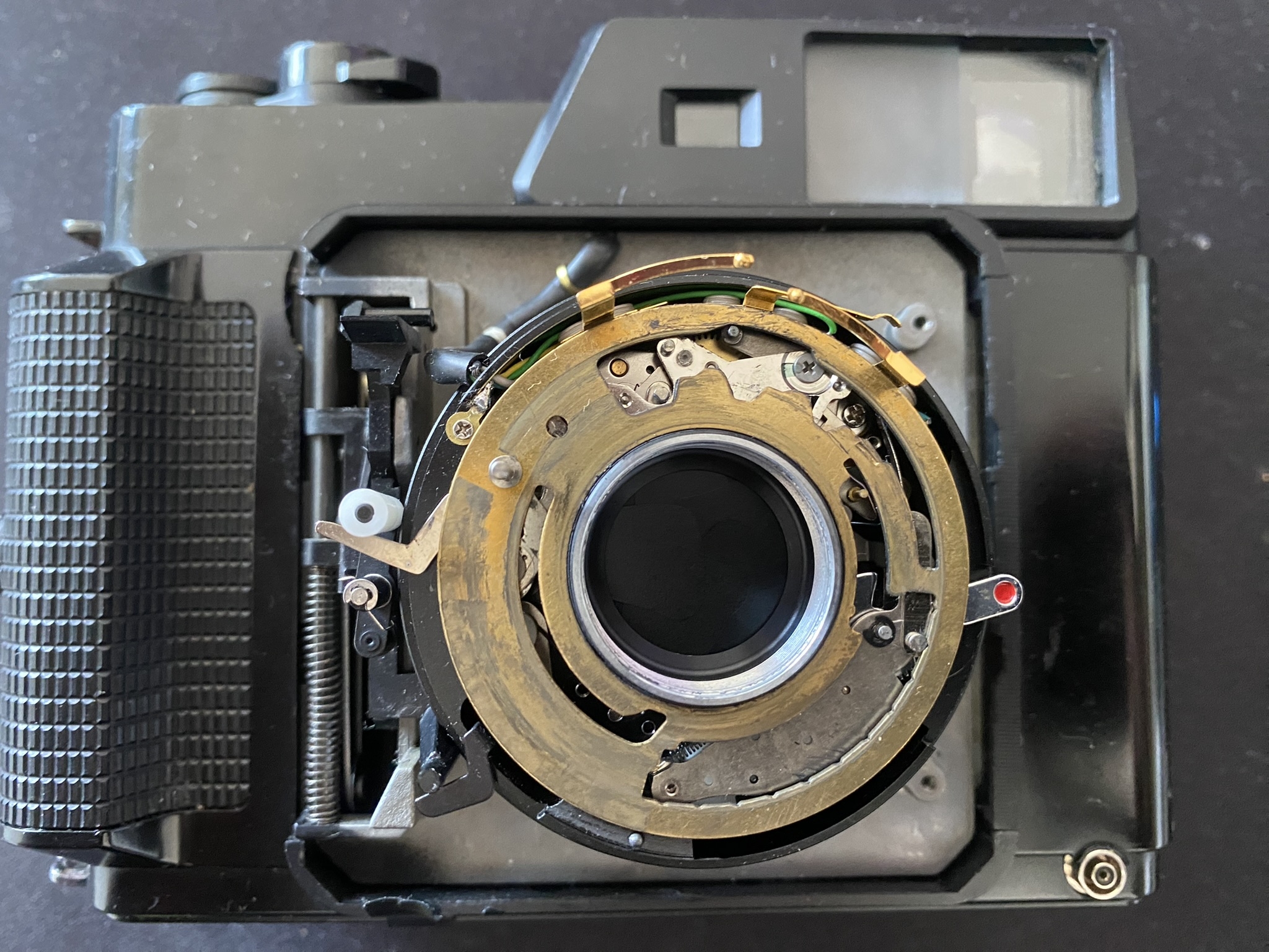 @BobUK To your viewfinder question: If you have already checked everything with the rod coming from the lens to the body, then you need to look into the rangefinder. For this you need to desolder the electronics and remove the top hood. When desoldering the electronics, note that there are two black wires. IMG_0370.JPEG shows which black wire is connected to GND and which to something related to the flash.