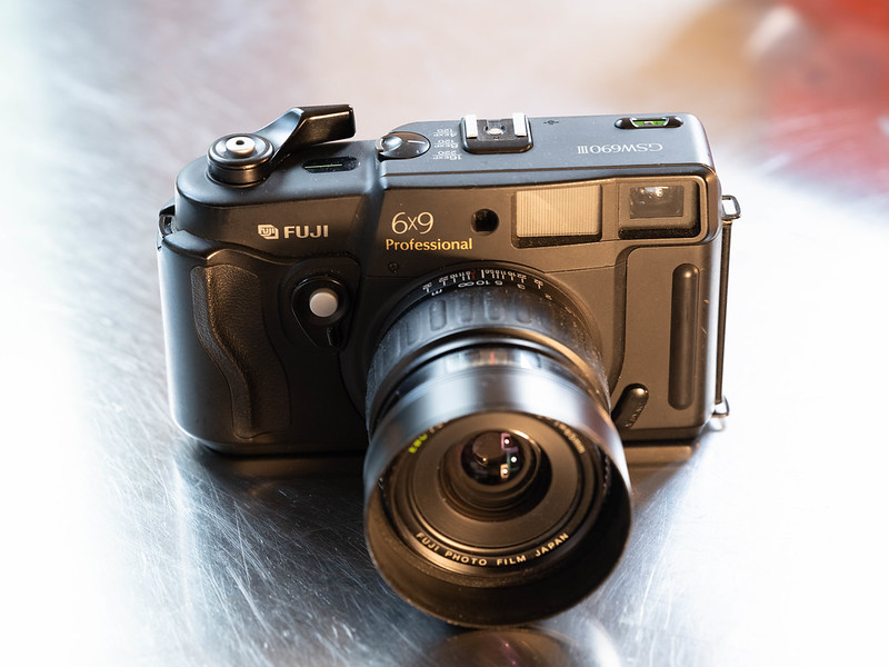 I have a very nice used Fuji GSW690 III Professional medium format rangefinder camera for sale. It is fully functional and in very good condition. It is showing 120 or 1200 shots - I have only put a few rolls through it but it works wonderfully, and of course the large 6x9 negatives are something to behold. Over all condition is good with the usual wear marks on the body lens barrel; and hood - no dents or dings, just wear marks.