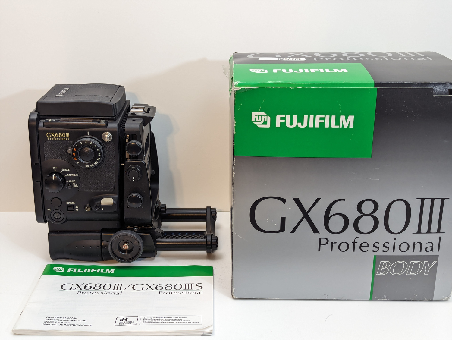 GX680 III body with waist level finder, caps, box/packaging, and manual - $525 SOLD