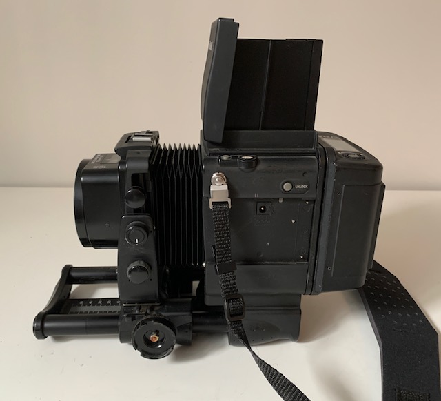 Selling a good condition fully working Fuji GX680III with a 125mm f5.6 Fujinon lens and a IIIN 120 back with spare spool. Bellows light tight. Shutter fires on all speeds and from photos I have made are correct. Glass good and shutter and aperture blades are oil free. Comes with the important neck strap that makes taking handheld photos easier. Normally used on a tripod because they are big heavy precision cameras but I used it often hand held with the neck strap. A google search will provide much information on these cameras. I took a test roll to confirm everything was working correctly and results are shown here. I have many other GX680 lenses and if there is one you particularly want let me know.