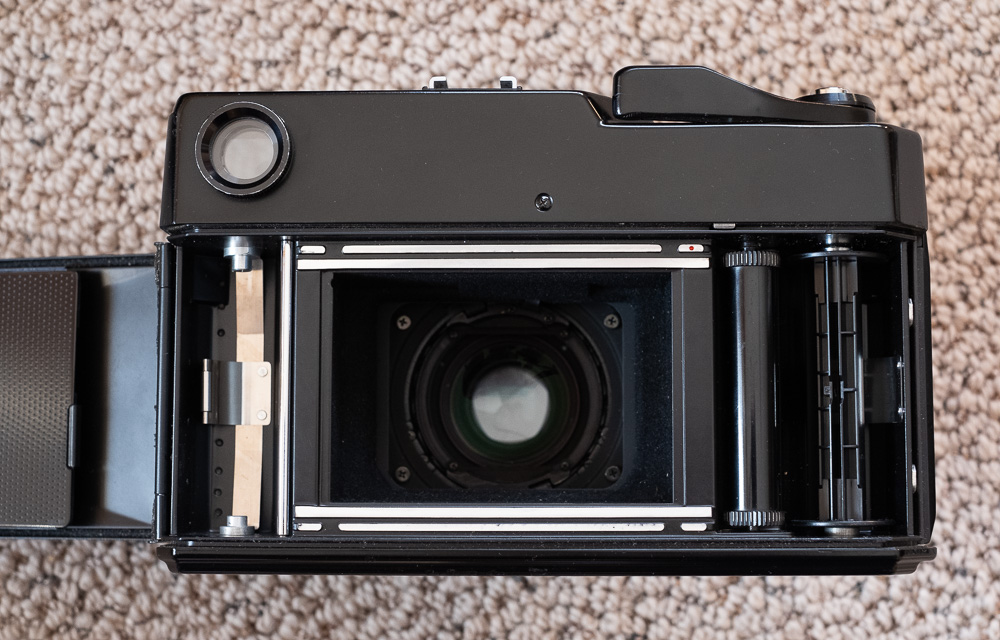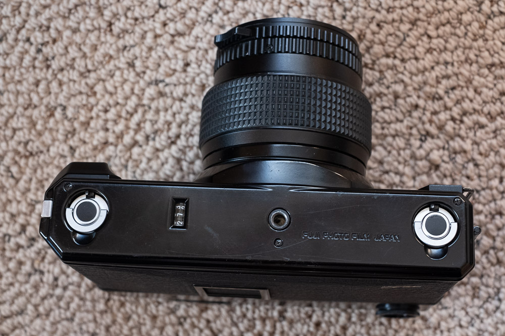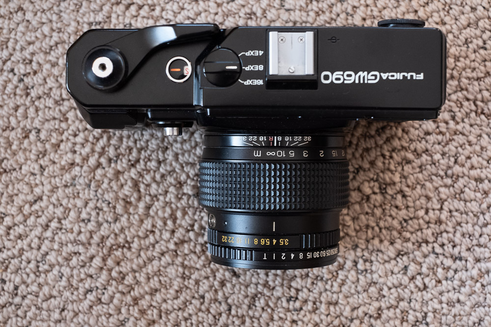 Up for sale is a used Fujica Fuji GW690 6x9 medium format film rangefinder camera, aka "the Texas Leica". This camera produces big, beautiful 6x9 negatives and slides, which is the largest non-panoramic medium format, and you get 8 on a roll of 120 film. The camera is the original version, with no built-in lens hood. The condition is about an 8 of 10, there is some paint loss on the black trim, as well as scratches on the bottom and top plates. Everything works well, including the viewfinder and rangefinder. It includes the screw in plain diopter which is sometimes missing from these cameras. Counter reads 273, which is supposed to indicate number of exposures (x10). The shutter is properly timed, and the EBC multicoated glass is clean and clear. The focusing helical moves smoothly.