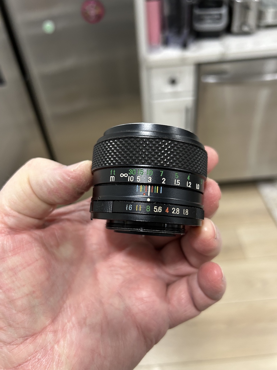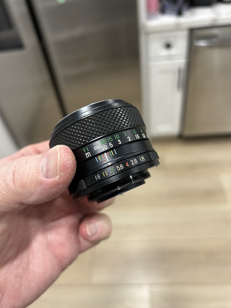I am selling a Fujinon 55mm F1.8 for M42 mount SLR's (probably from the 1970's). The optical condition of this lens is superb - no haze, no scratches, no fungus or other defects. The focus and iris controls are also smooth and normal. The iris action is, however, sluggish on the return stroke (after auto stopping down). My guess is that the lens would take great photos, even in auto iris mode, but I have not tested it on a camera with film (or sensor) and I have too much on my plate right now to do so. It will, at the very lease, function as a preset M42 lens (if used on an M42 SLR with stop-down preview). The build quality is inspiring BTW, it is pretty (IMO), and it is priced accordingly!