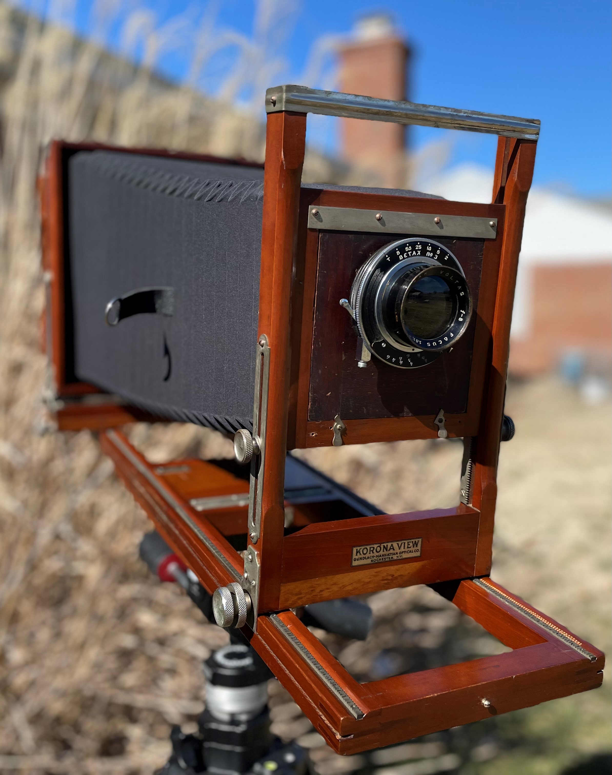 Got my Wollensak Voltas F-8 convertible lens in a Betax #3 shutter mounted on a surplus lens board I had laying around, but will probably replace it in the future, as it is off-center, but I am tired of waiting and want to start shooting soon.