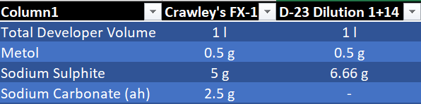 @chuckroast: D-23 dilution 1+14 is quite close to FX-1 (without Iodide) but doesn't have Carbonate.