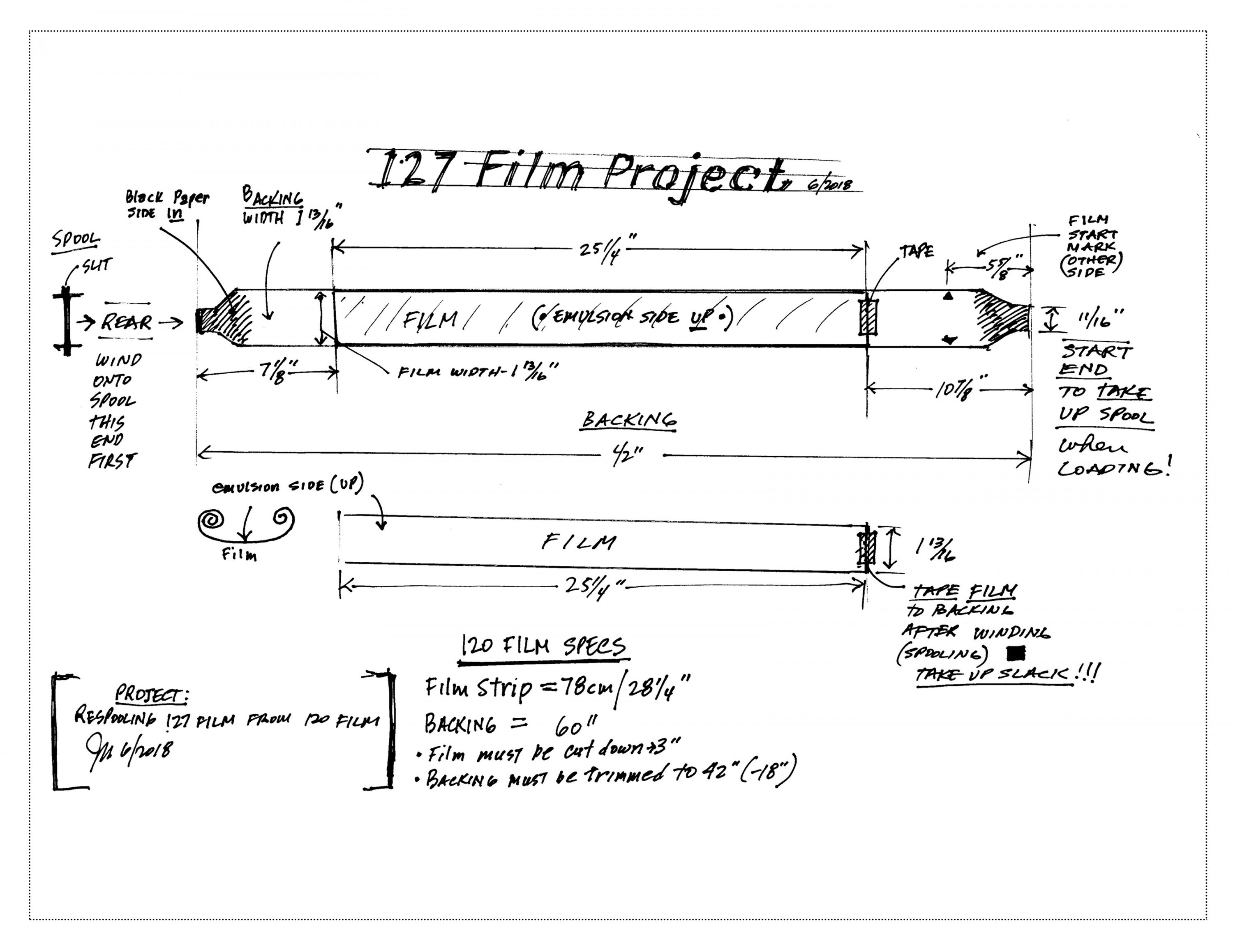 I bought a film slitter from ebay with the intention of cutting 120 down but I lucked into five 100-foot rolls of 46mm Portra 160NC from a guy who used them in an old bulk-loading portrait camera. (I forget the brand name but it was commonplace among studios that shot class portraits in schools.) And, of course, 46mm is the right size for 127. I use the slitter to cut down backing paper, since my recycled papers from old rolls of Efke and Rerapan were getting too dog-eared to use. A side note that may not be news to you: Frugal Photographer has solved some of his production-line issues and is once again loading Portra in 127 format.