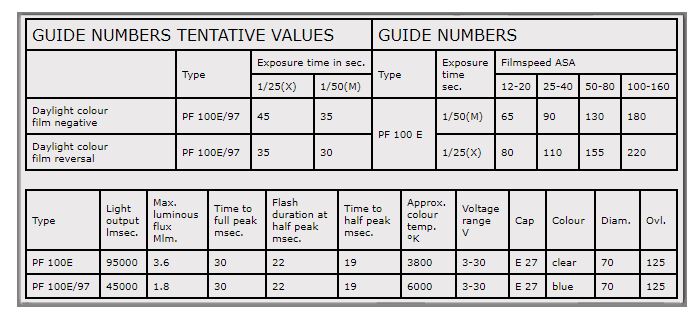 Note to those who may not know: The GN table images, above, are for TUNGSTEN film speeds. Daylight film speeds may differ. Also, the tables that reference fim brands/types are likely not the same speed as the same film/type made today. So don't forget to factor in all of the changes between the film of the flashbulb era and today; check your GN calculations carefully. :smile: