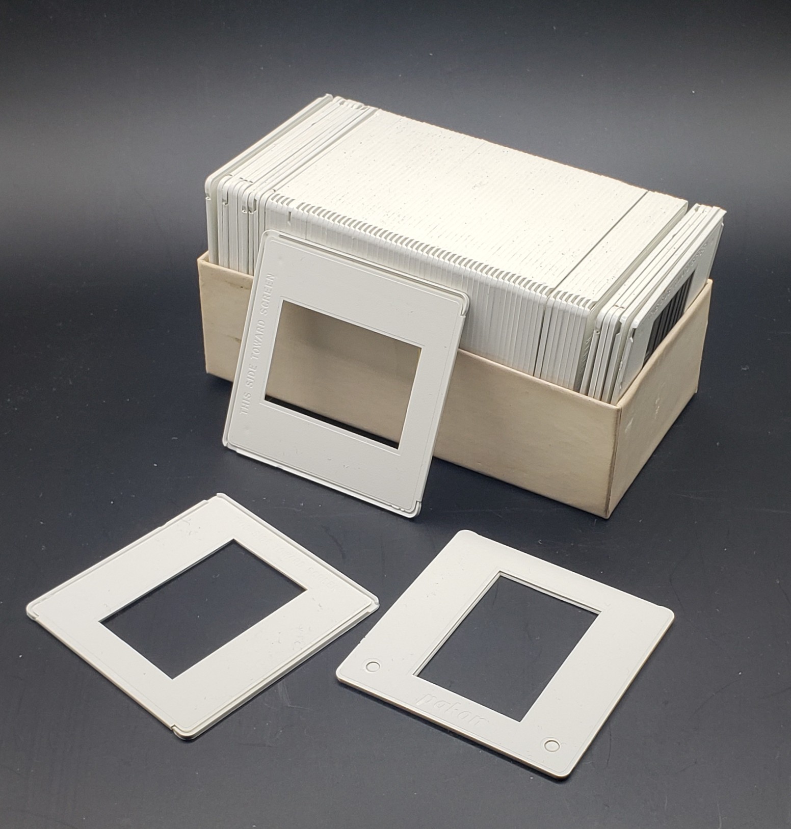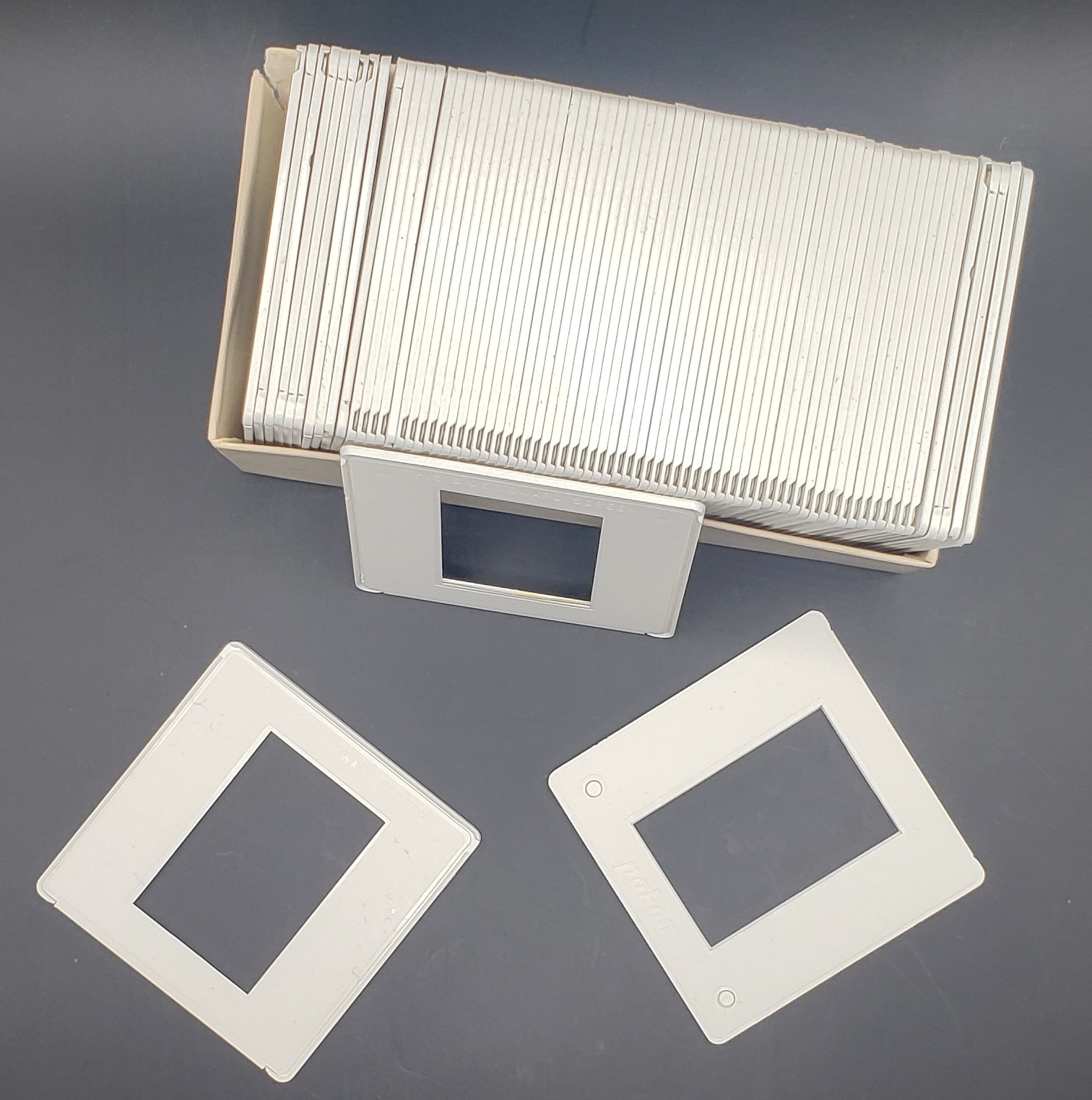A lot of 78 Pakon 35mm plastic slide mounts.
