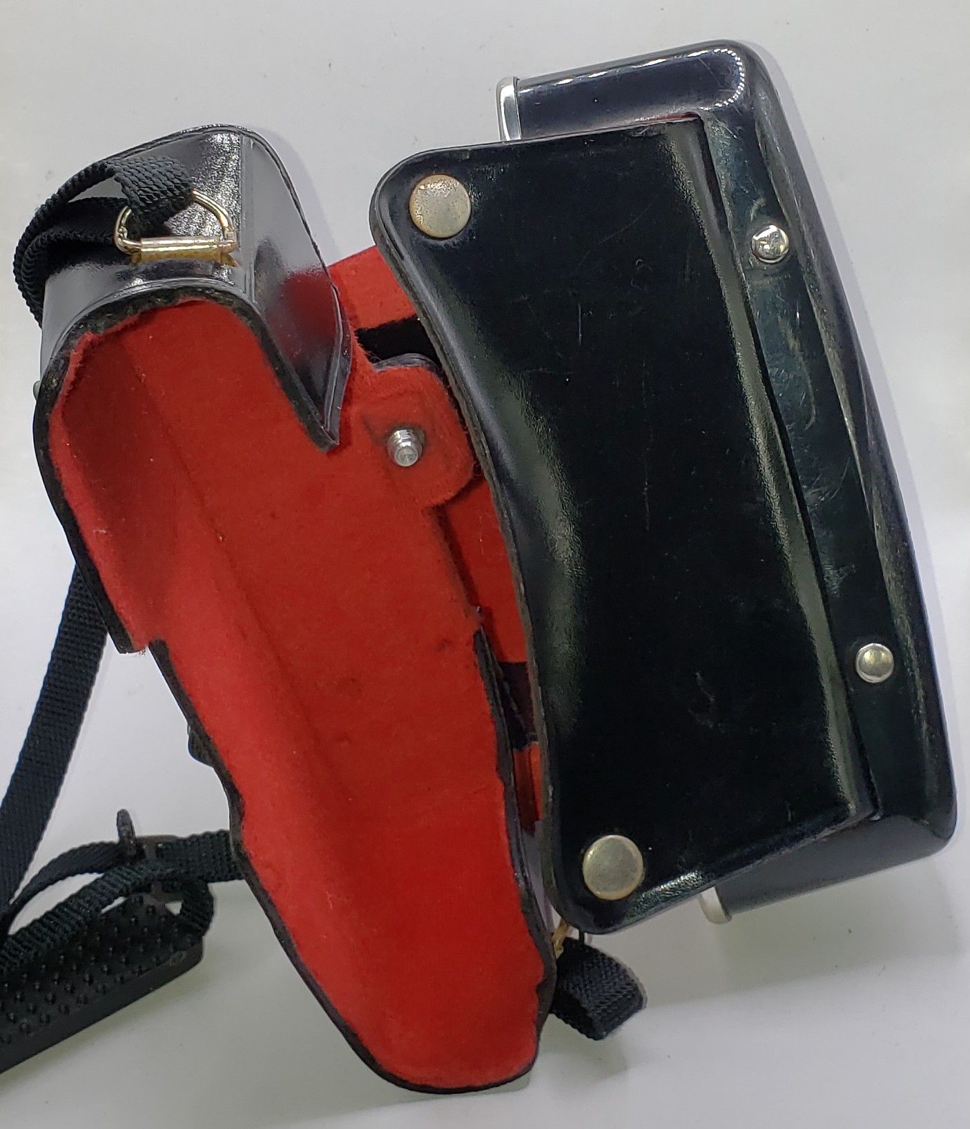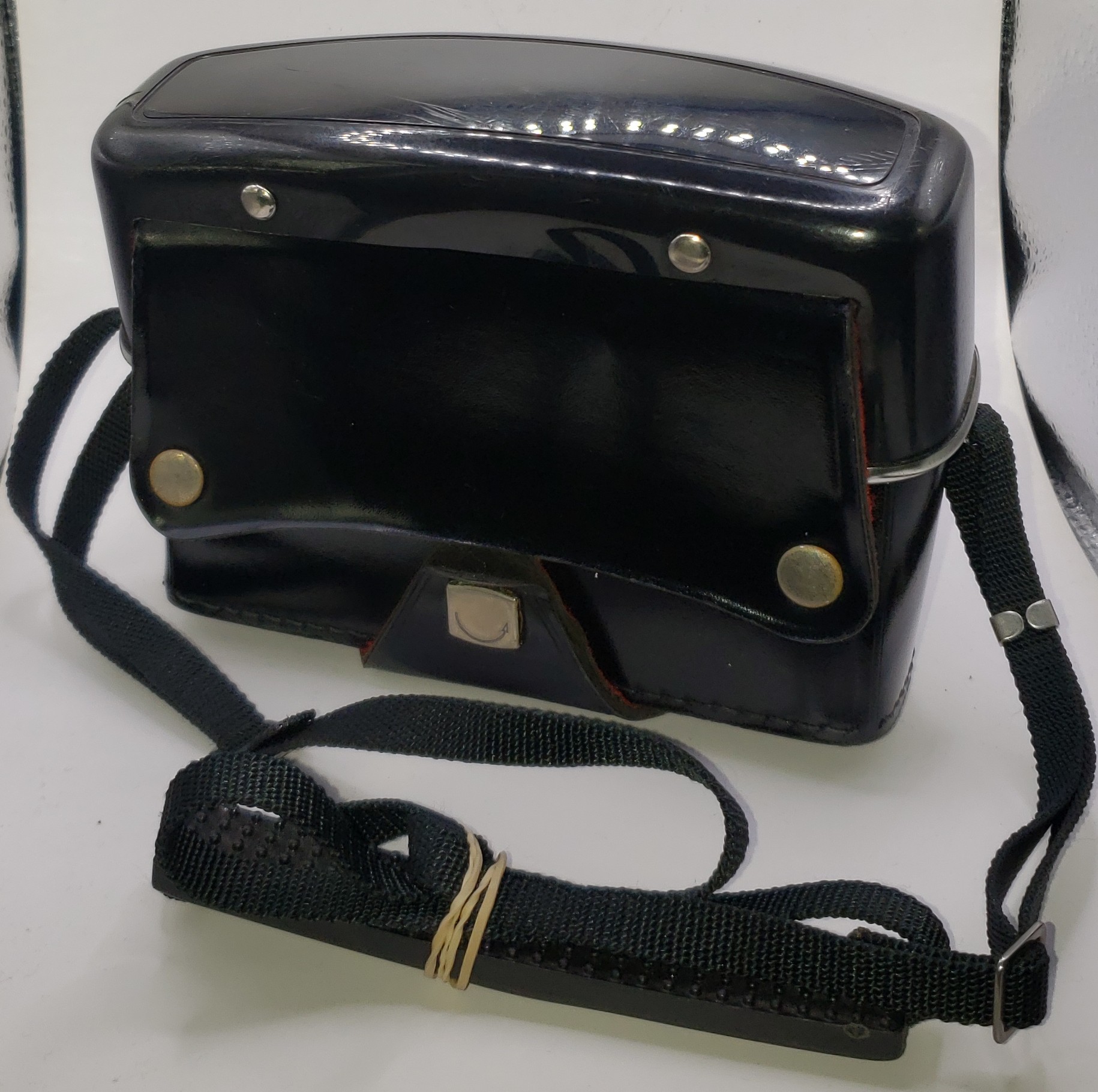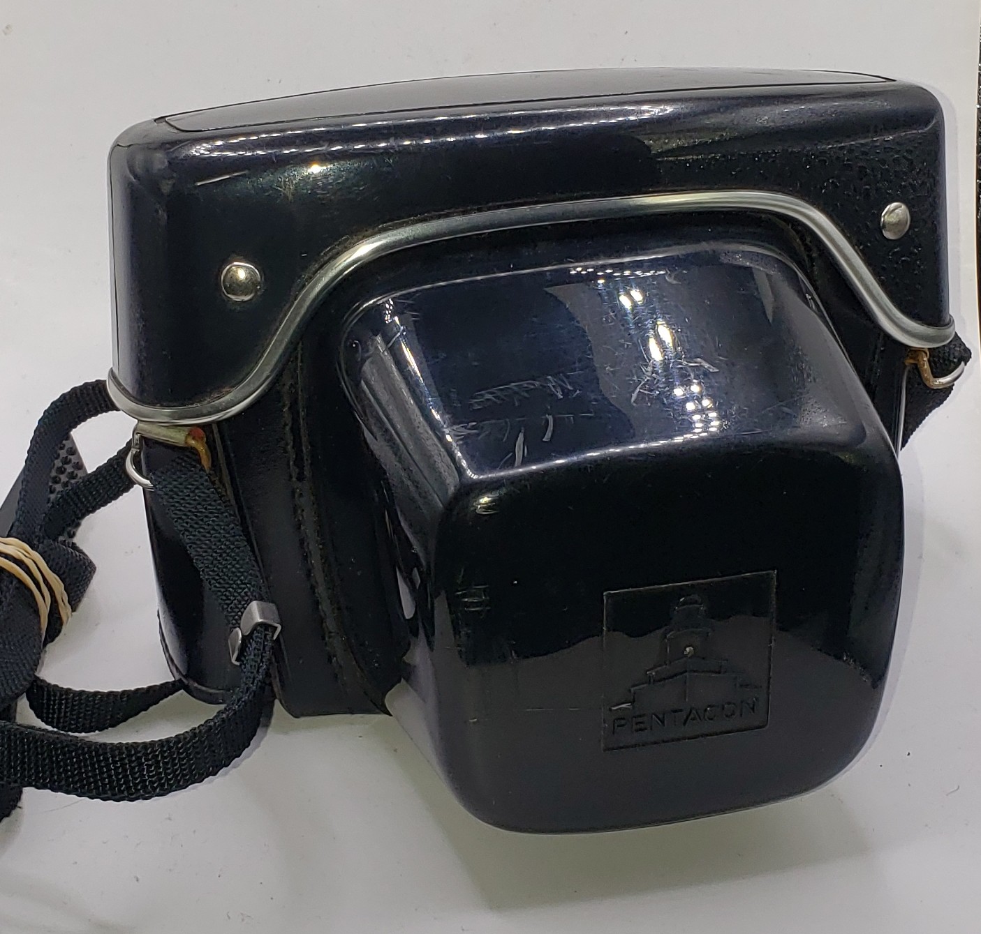 A nice, used black camera case for a 35mm Pentacon / Praktica camera.