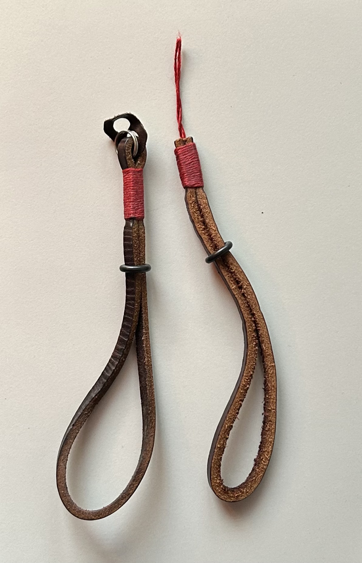 Gordy wrist straps: lug and string type both regular length as per the Gordy website. Both used only for a few outings and the leather is still firm. I didn’t take to holding my M bodies all day this way and quickly went back to neck straps.