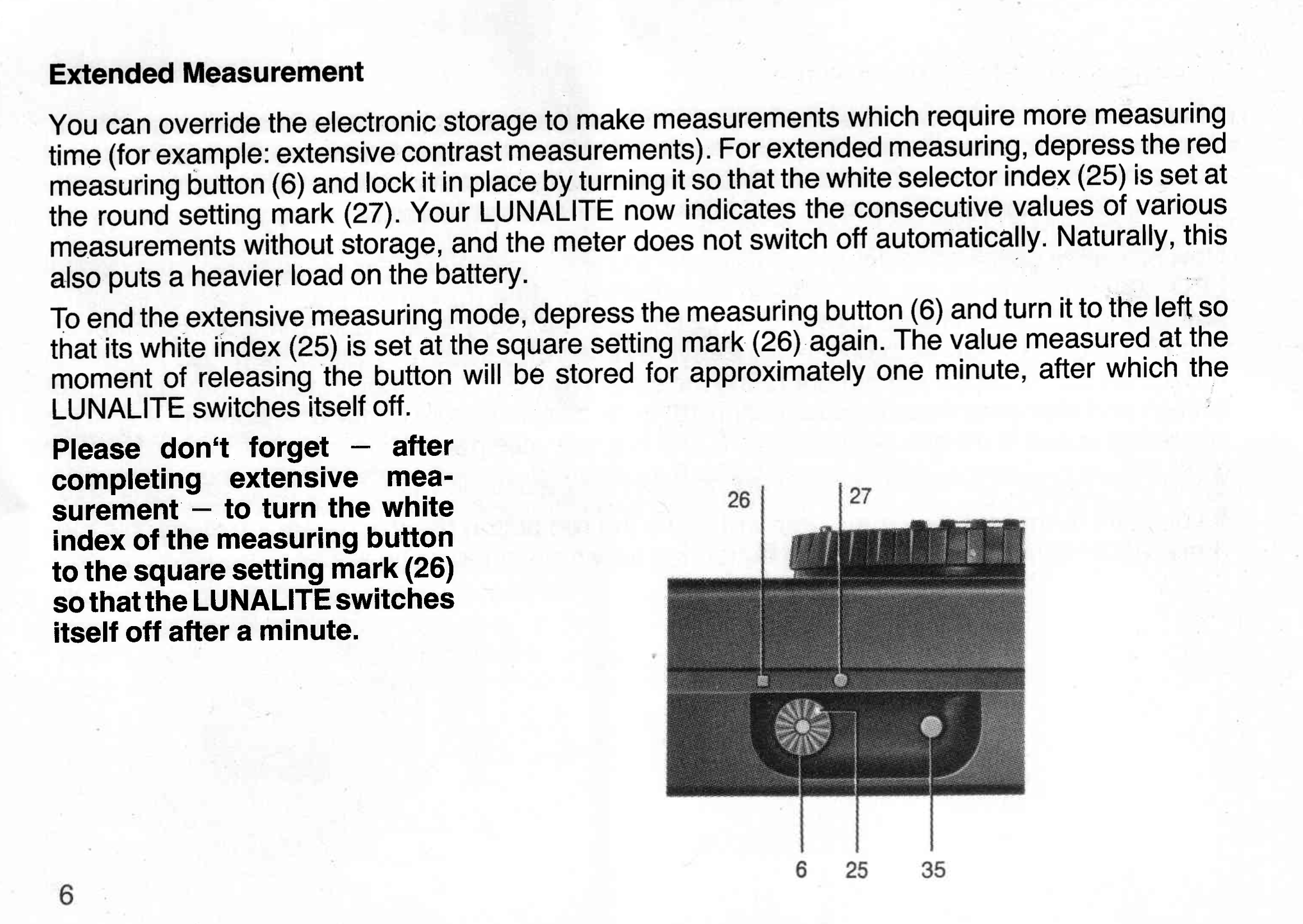 The left button that’s used for metering. It’s got a white dot, that should point to the front (sensor side) when it points to the back, the meter is always on (locked) and batteries go very fast.