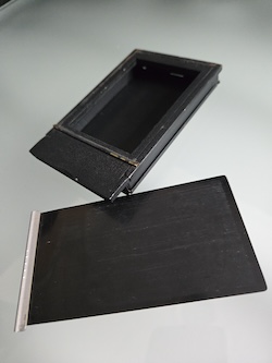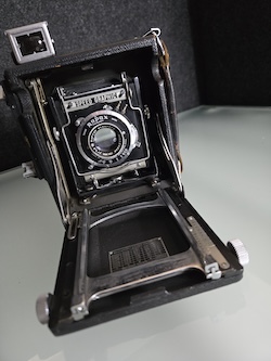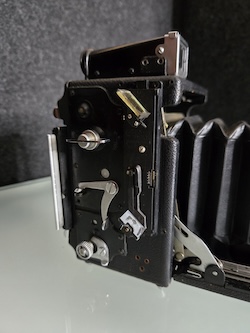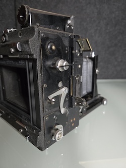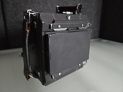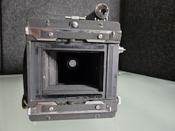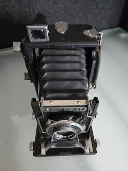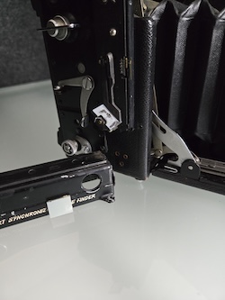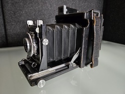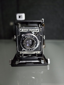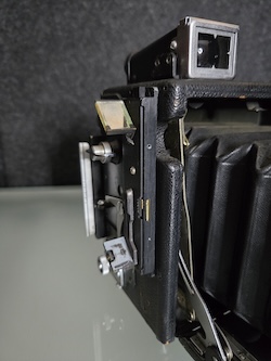 Asking $48 plus shipping for this Graflex 2-1/4 X 3-1/4 Miniature Speed Graphic sn: 337092. Built in the 1940's, this unit is being sold for repair or as a parts unit. Obviously the rangefinder needs some work. The lens also feels sluggish and is sticking. I am not aware of any other issues because testing stopped at that point.