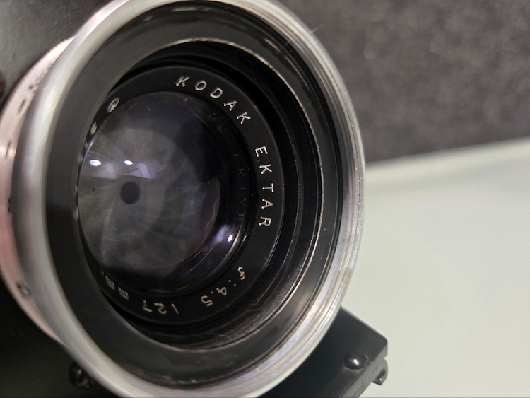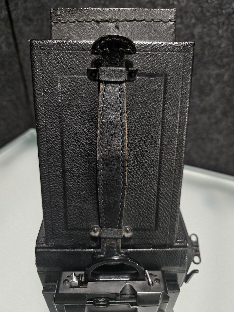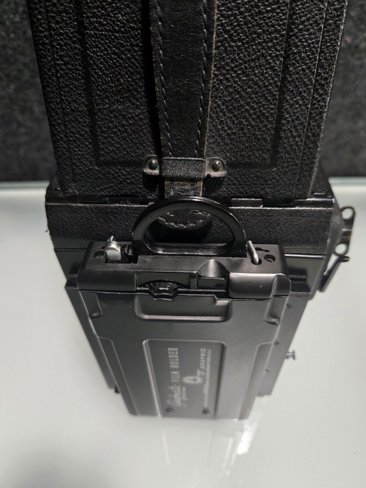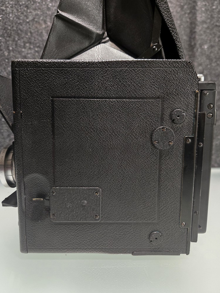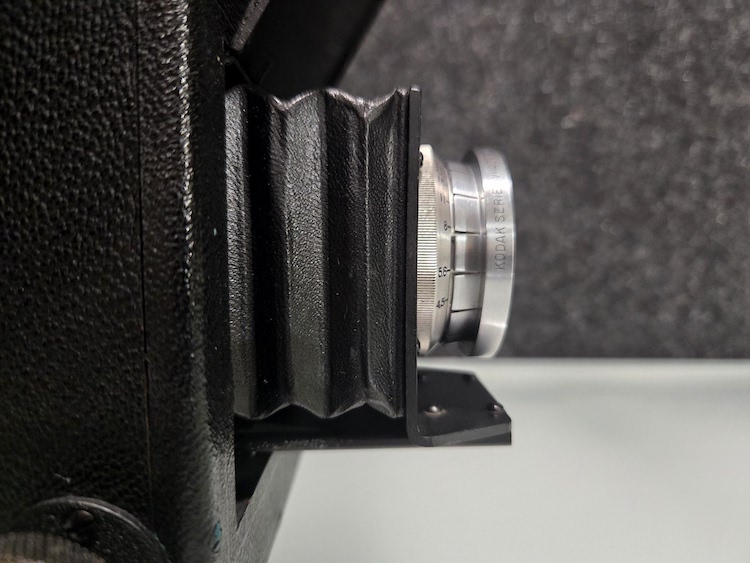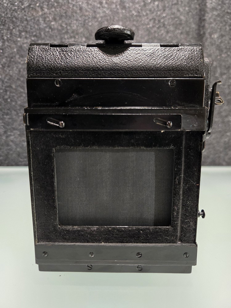 Graflex R.B. Series B Revolving Back 2¼x3¼ Camera serial number 372694. This camera was built as a part of an order of only 1000 on 12/5/1945. This camera is in very good condition. Please see photographers for details. All buttons, levers, knows, and latches appear to function as they are supposed to. I did not test the camera with film, but I did focus it on a ceiling light (pictured) and clicked the shutter. That is as far as the unit was tested. Because of its age, this is being sold "as is."