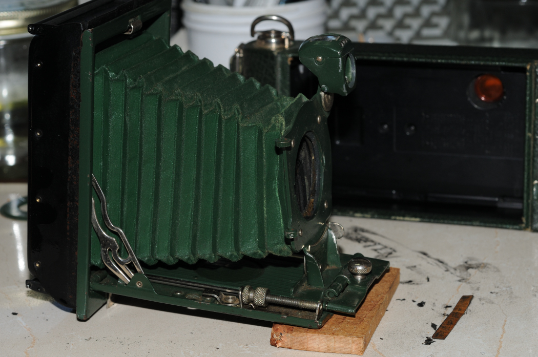 The Kodex shutter works properly and the 111mm f7.9 Kodar lens is dirty but unscratched.