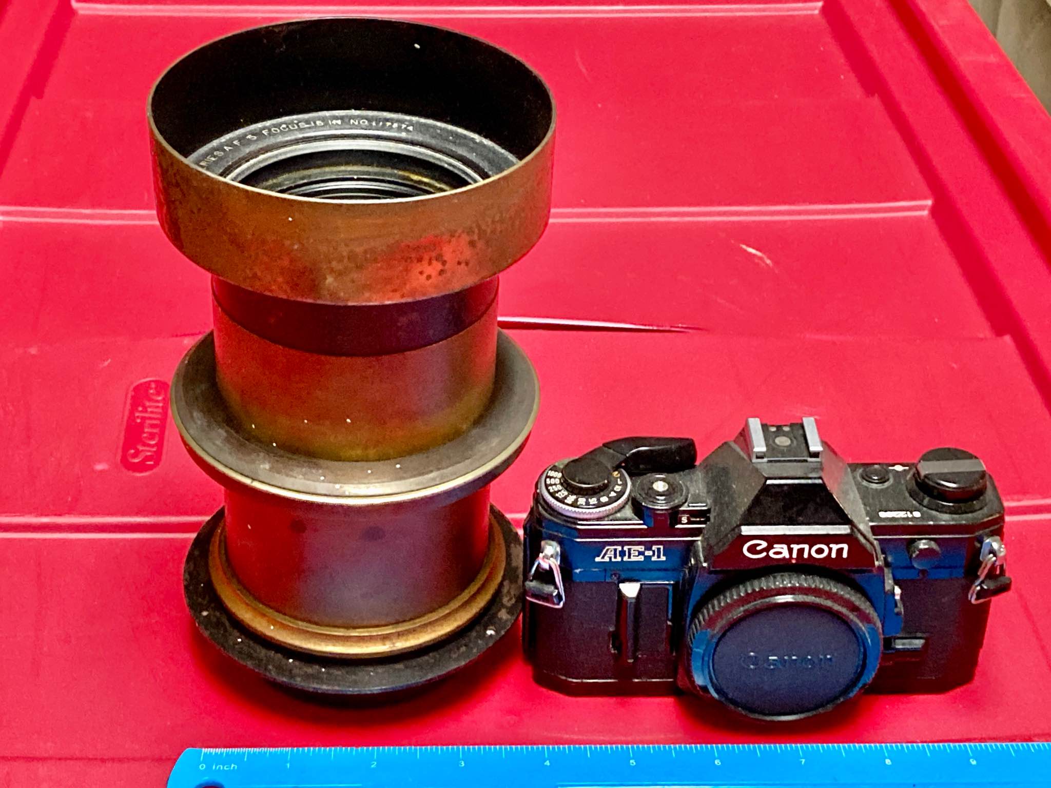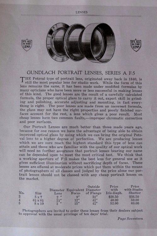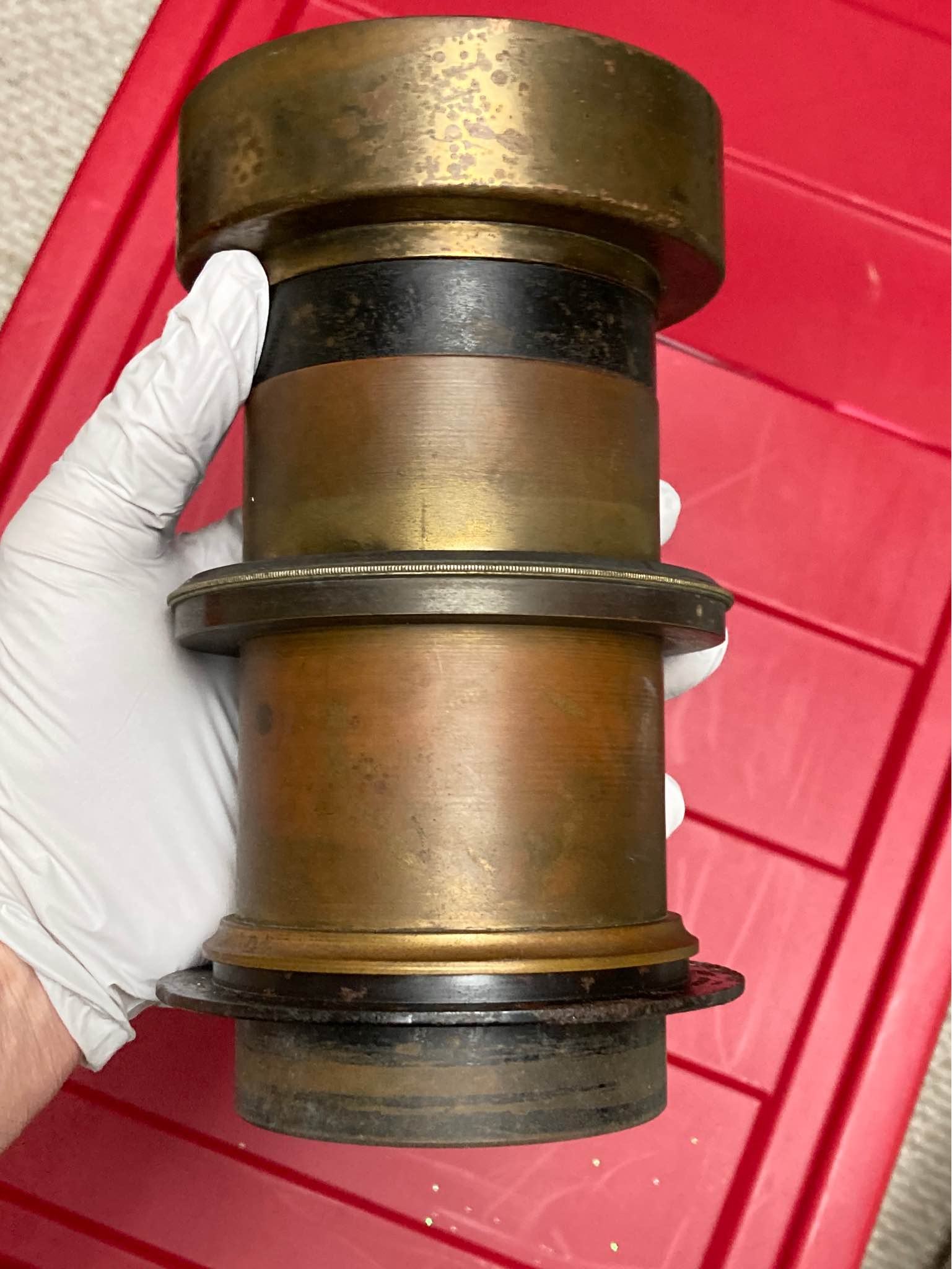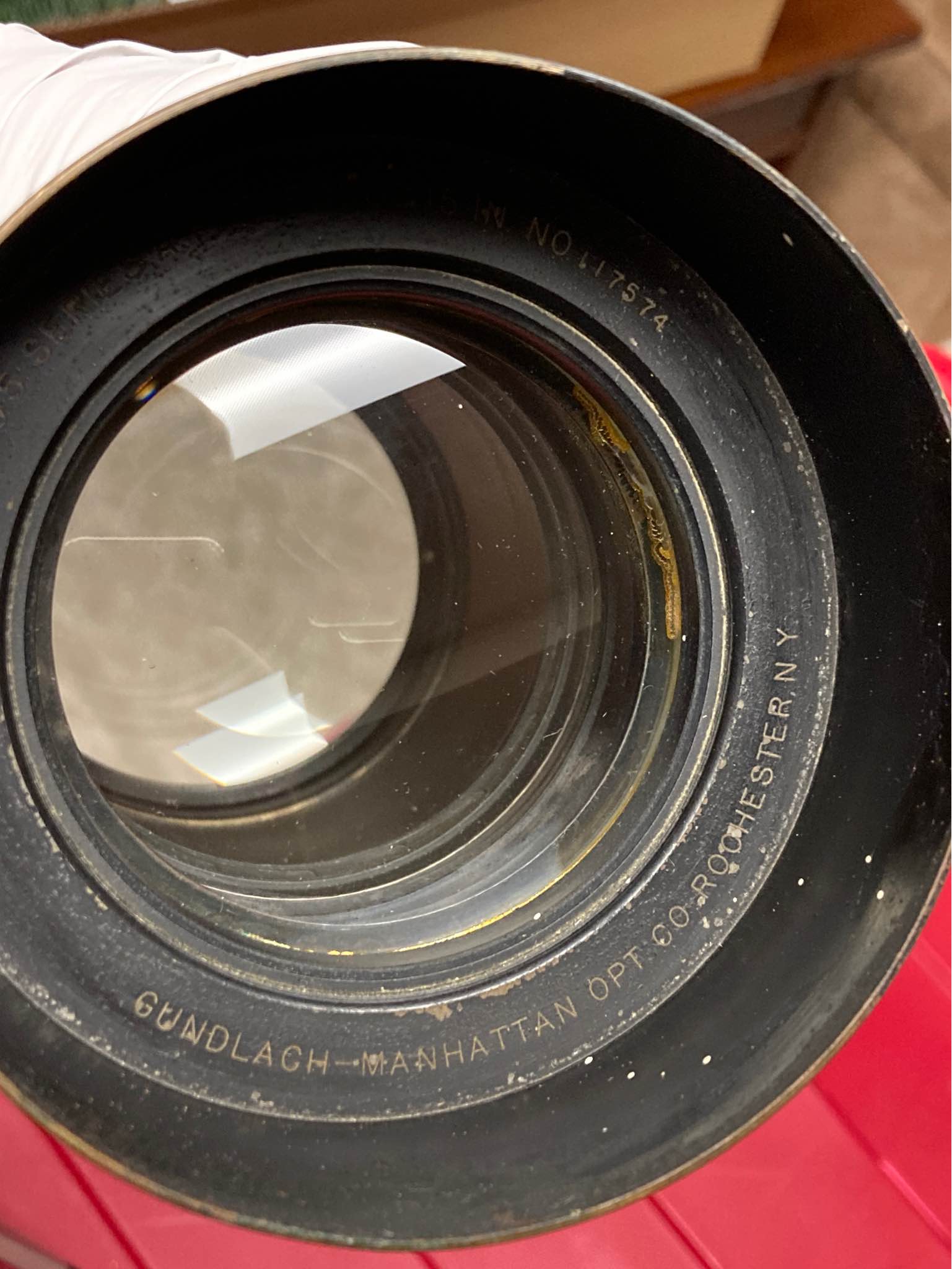 Gundlach Portrait Lens F/5 Series A No. 5 for 8x10. 15" focal length. Glass is super clean and clear. Tiny patch of separation at extreme front edge of front element. Its not in the optical path - at very edge - no problem, no issue at all. Iris works well. Includes original flange. This lens is circa 1920 and is of the typical Petzval design. $ 999 plus shipping. I ship worldwide to PayPal addresses.