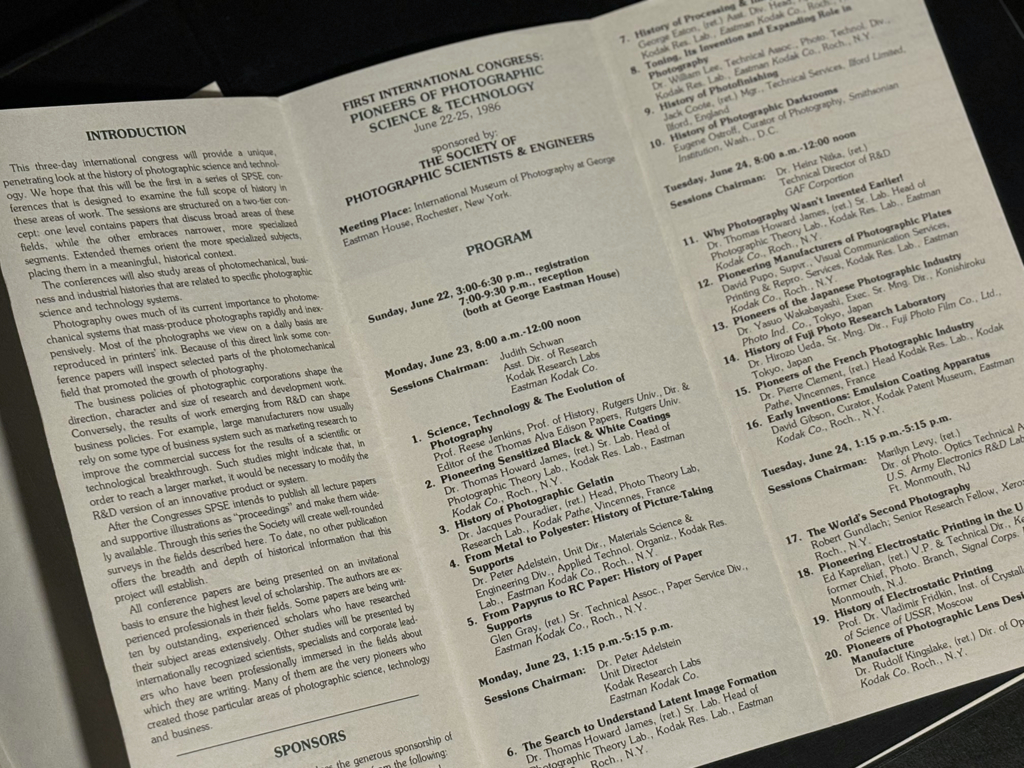1. "Pioneers of Photography: Their Achievements in Science and Technology", by Eugene Ostroff. Hardcover first edition with original conference program included! An incredible book with landmark reports, including Joseph Boudreau's description of his recreation of the Hillotype. ($70 USD)