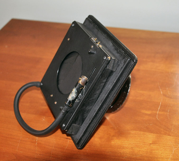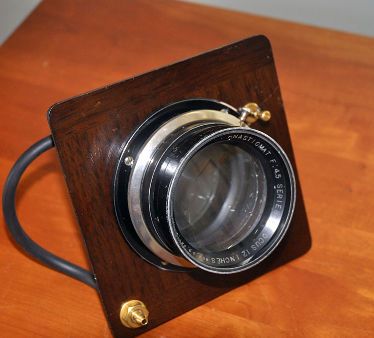 This on fits the 20" Rapid Rectilinear lens on my 12"x10" filed camera.with a smaller shutter and CF card for comparison: