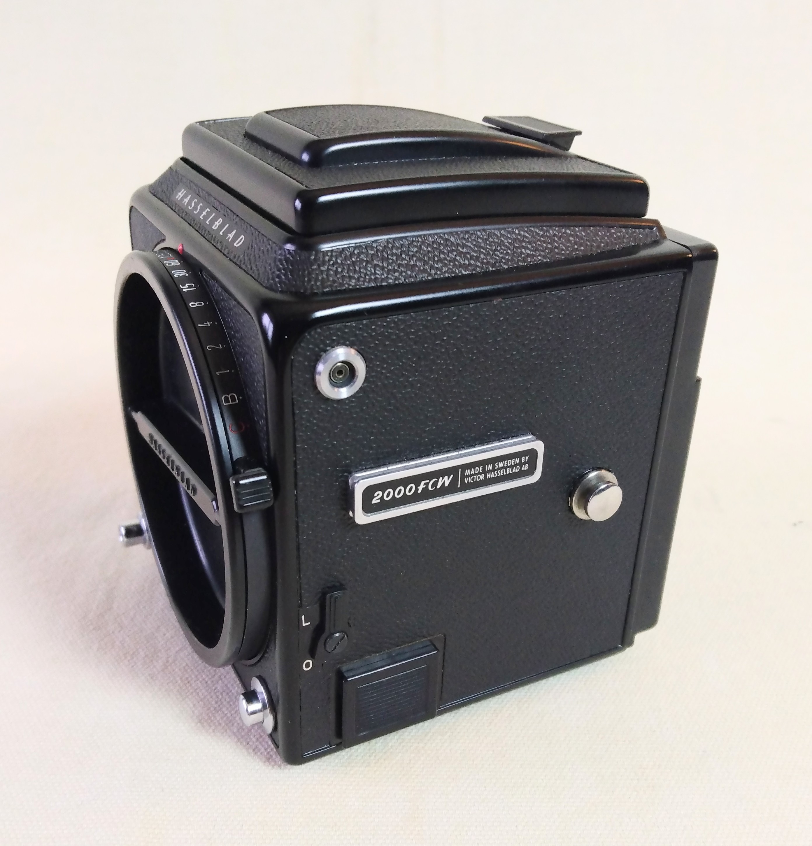 "The Hasselblad 2000FCW is a medium format camera with extremely fast shutter speeds, large aperture lenses and optional winder operation. The 2-1/4" x 2-1/4" (6cm x 6cm) format and its compatibility with the extensive selection of accessories from the Hasselblad system provide the camera with maximum flexibility, making it ideal for demanding professional photography.