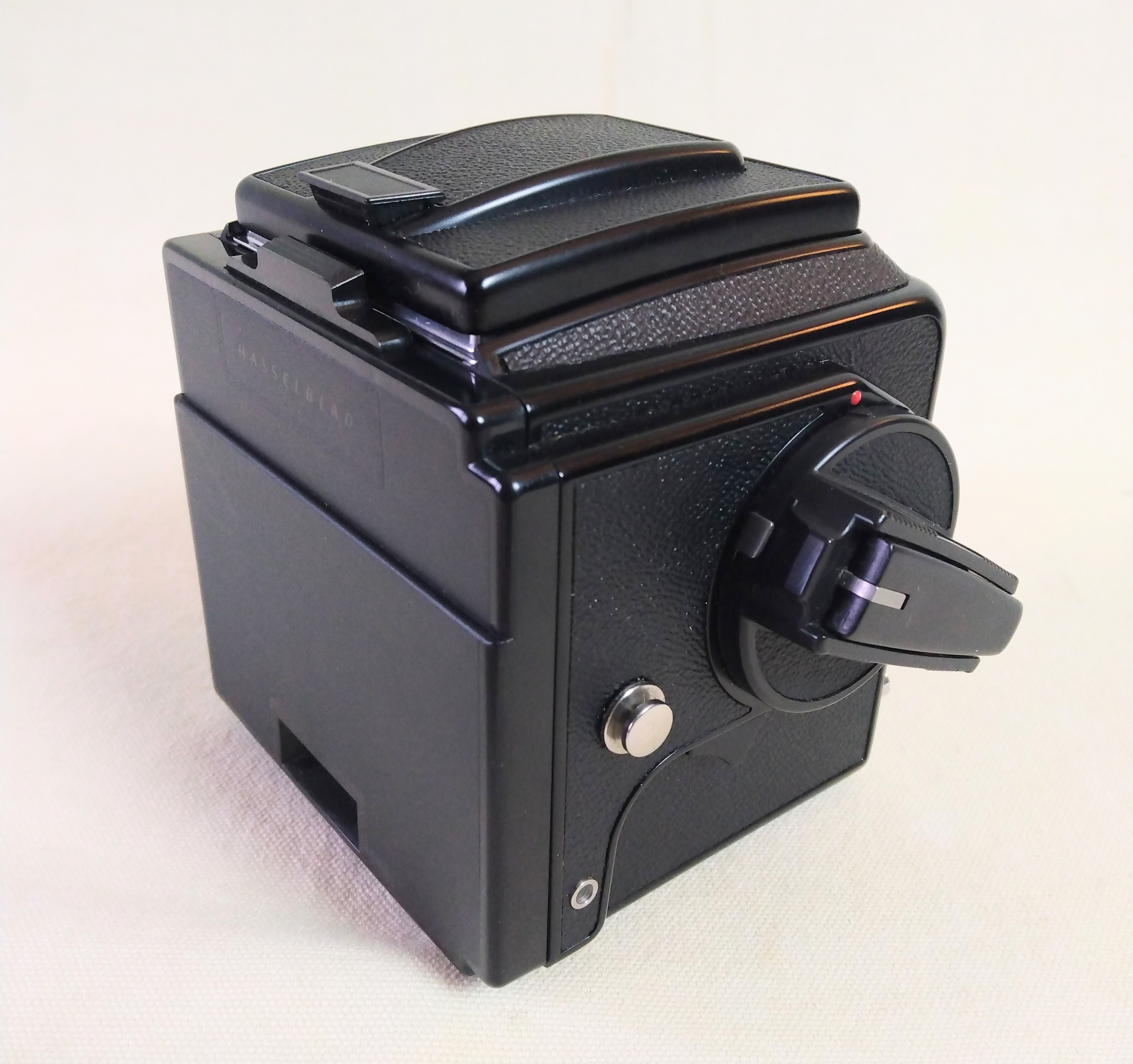 Film advancement and shutter cocking are done manually with the winding crank or automatically with the Hasselblad Winder. This accessory provides the ability to take sequential pictures at a speed of 1.3 frames/s. Double exposures can be taken by simply disengaging the film advancement.