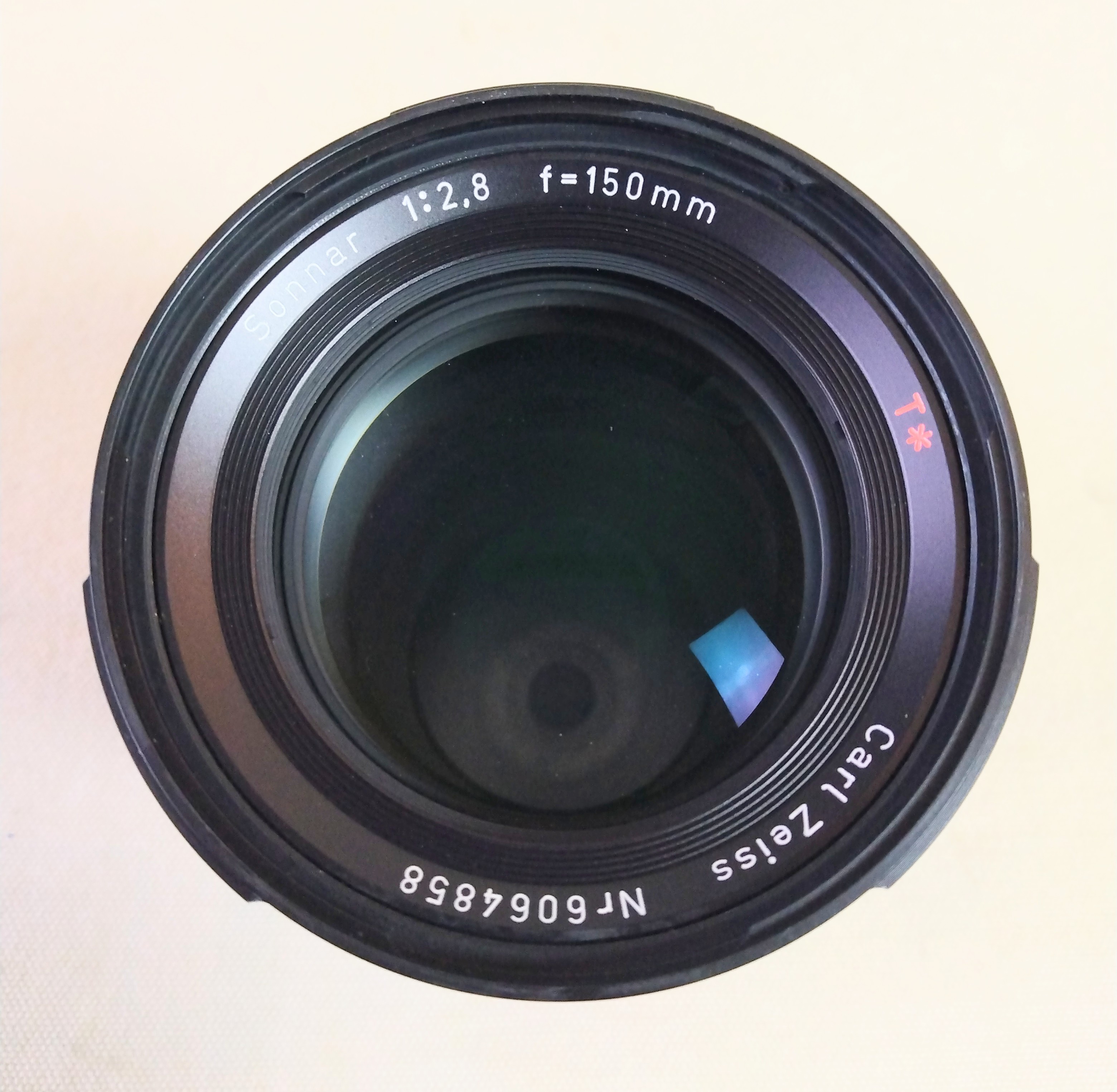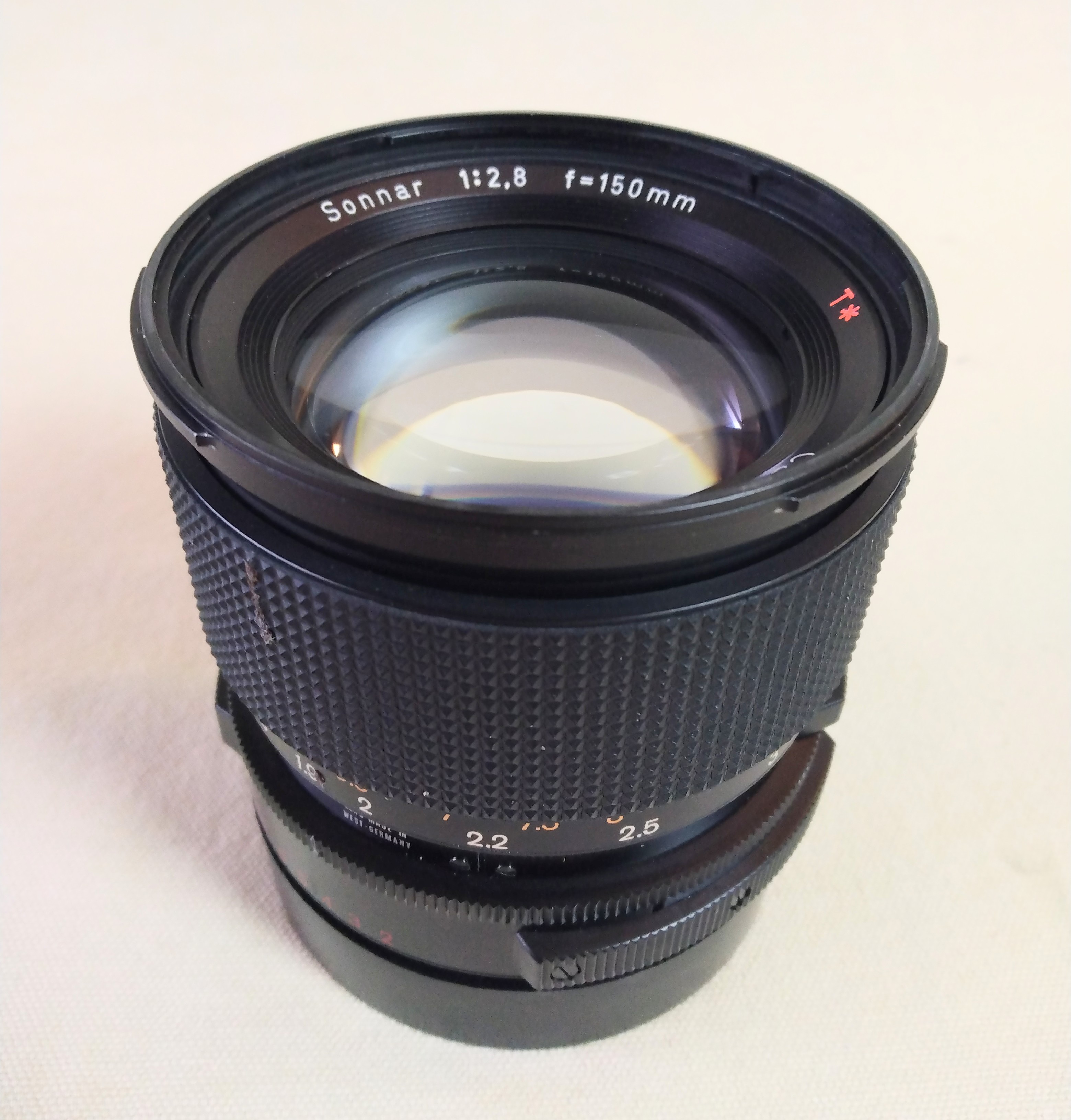 - Carl Zeiss Sonnar 150mm/f2.8 lens (with caps) - no defects in the front elements; 3 tiny spots in the rear elements