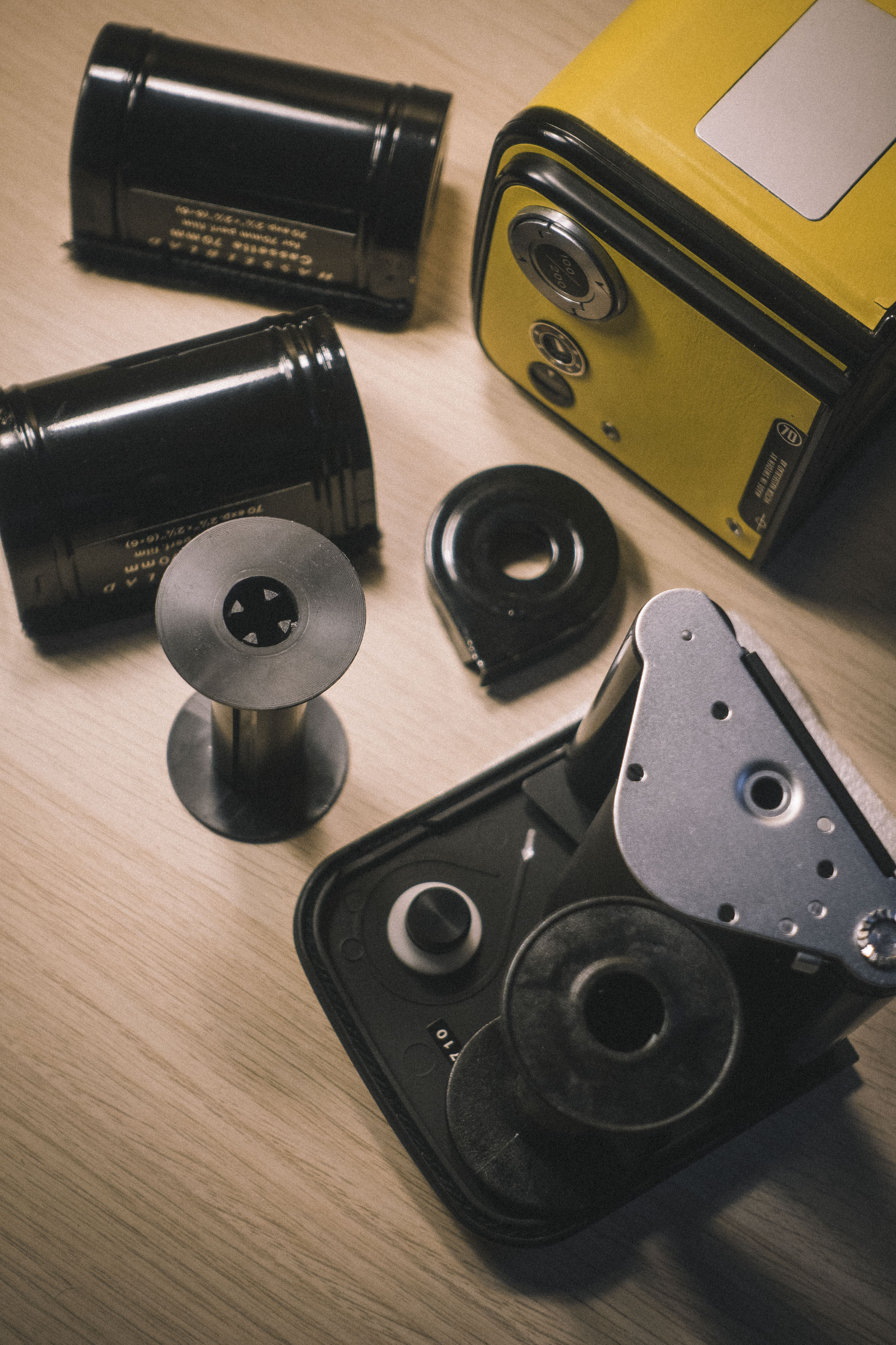 The spools for 70-100/200 have different ends, capable of "grabbing" the short rods of the mag and spin on them. The regular spool from the cassette is on the left, the 70-100/200 specific one is on the bottom right, inserted into the mag ... and yeah, I only got one :D also got an MKWE MK70 back that I can't mount on any of my bodies so if anyone wants that yellow NASA™ wonder – let me know 👌