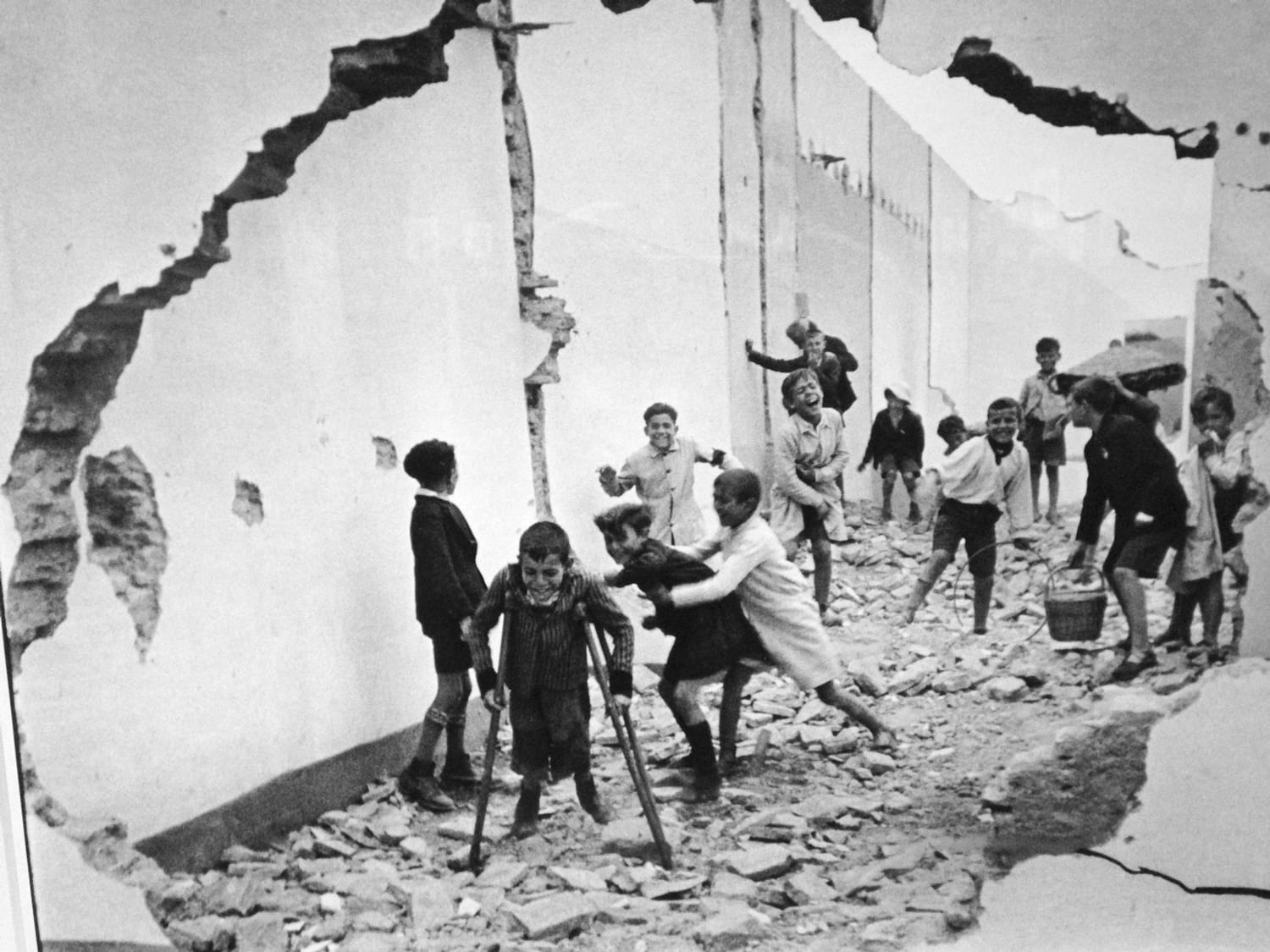 The version in the Family of Man book is not as good as this and I think he took several images with this being his best choice. Look how he has chosen the angle where the background floats neatly above the head of the woman with her hands offering the view before her and the timing of the figure on the left looking at her. This together with the balance of the three figures in the right of the composition. Also the soft tonal graduations with no black to enhance the delicacy of the image.