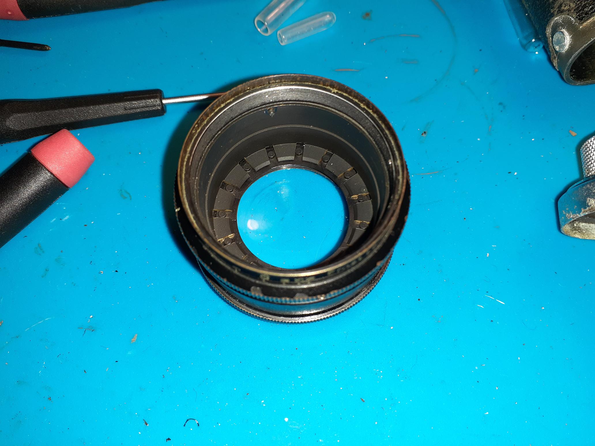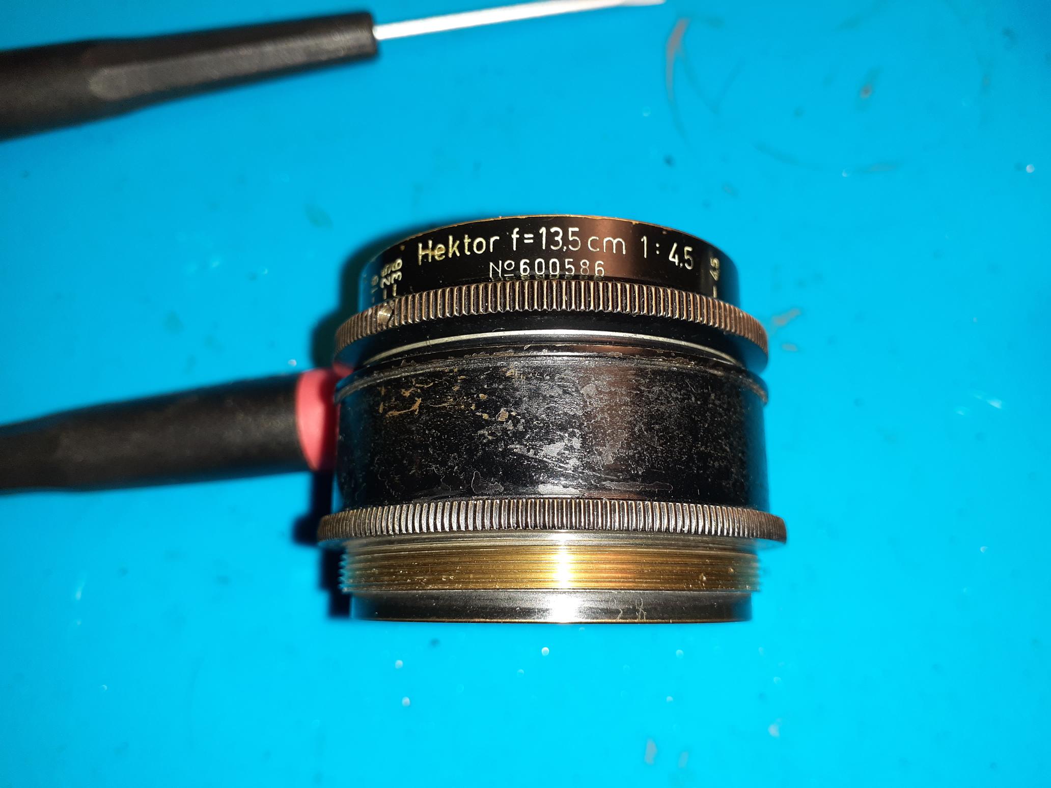 I'm stumped on disassembling the optical group/aperture of my Hektor 13.5cm lens. It has a stiff aperture ring that needs to be cleaned. I can remove the front optical group but nothing else seems to budge. There is one set screw around the aperture scale, 2 set screws around the aperture ring and that's it. I'm sure the rear group can be unscrewed but it's really tight and I'm waiting on the right size rubber grippy to loosen it. There are many lenses with guides but this doesn't seem to be one of them. Help?