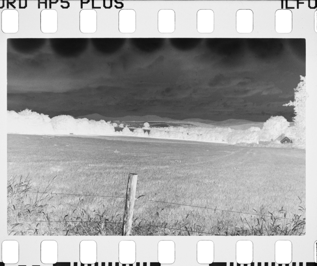 Apart from the order in which the 3 rolls were stacked in the tank, we also don’t know which way each one was facing: ie whether rotation would force chemical through the spiral, or spin it past. Either way, I’m puzzled how the dark blobs line up vertically behind the bits of film between the sprocket holes. With such vigorous rotation one might expect the marks to be slanted.