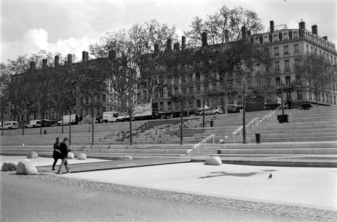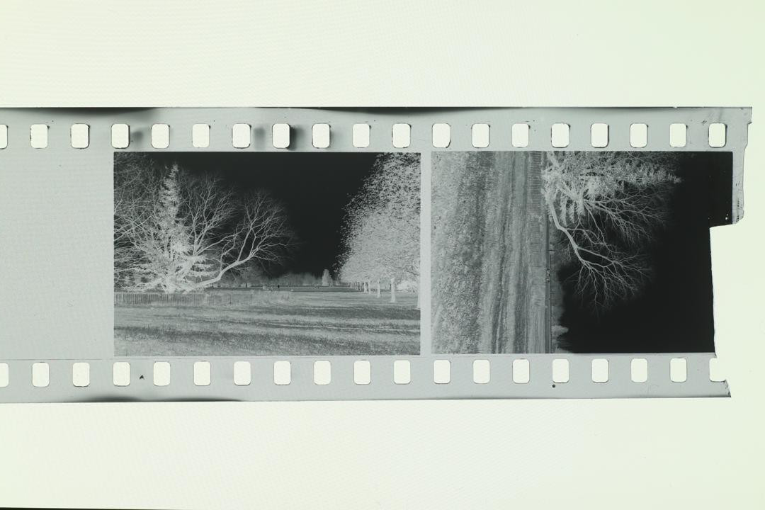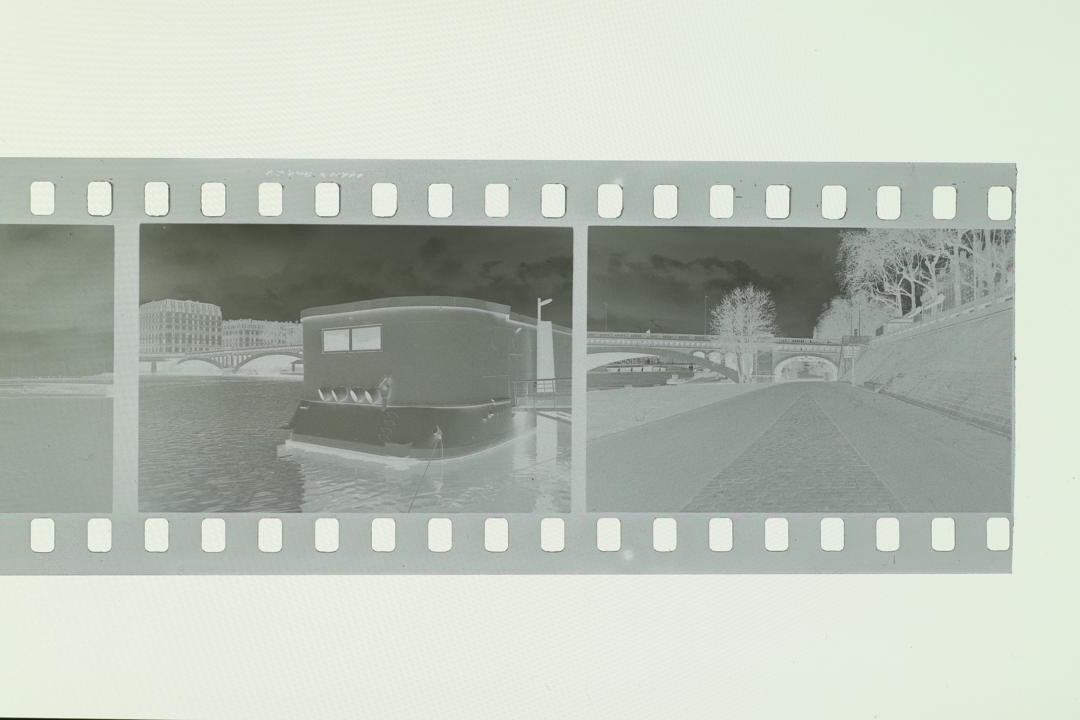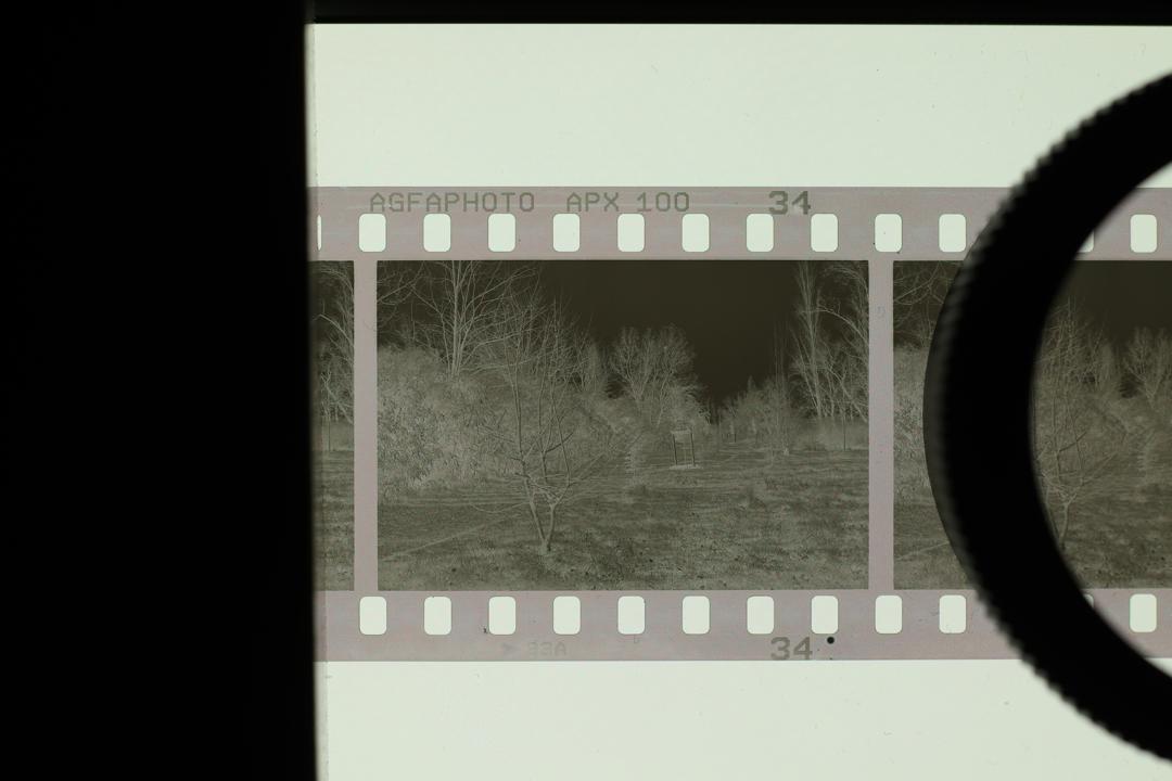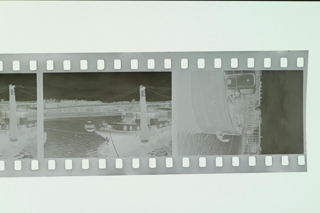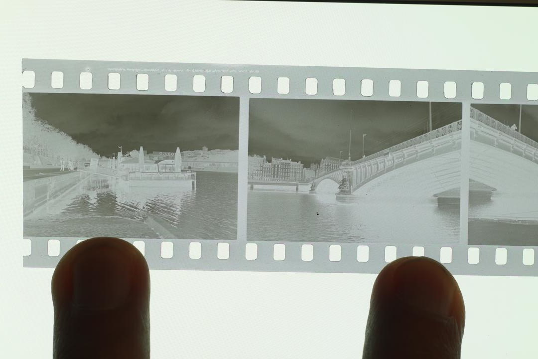 • Pictures of the negative : APS-C Canon EOS M100 mirroless camera, 50mm M42 fujinon f/1.8, no filter. Without and with extension tube for the close up shot. ISO 100, f/11, aperture priority mode. Light source was a phone. No edit on the first picture except rotation. The positive was done with the following method : 1) jpeg opened in GIMP 2) rotation/crop 3) colors->invert 4) colors->levels->auto 5) mode->grayscale 6) export.