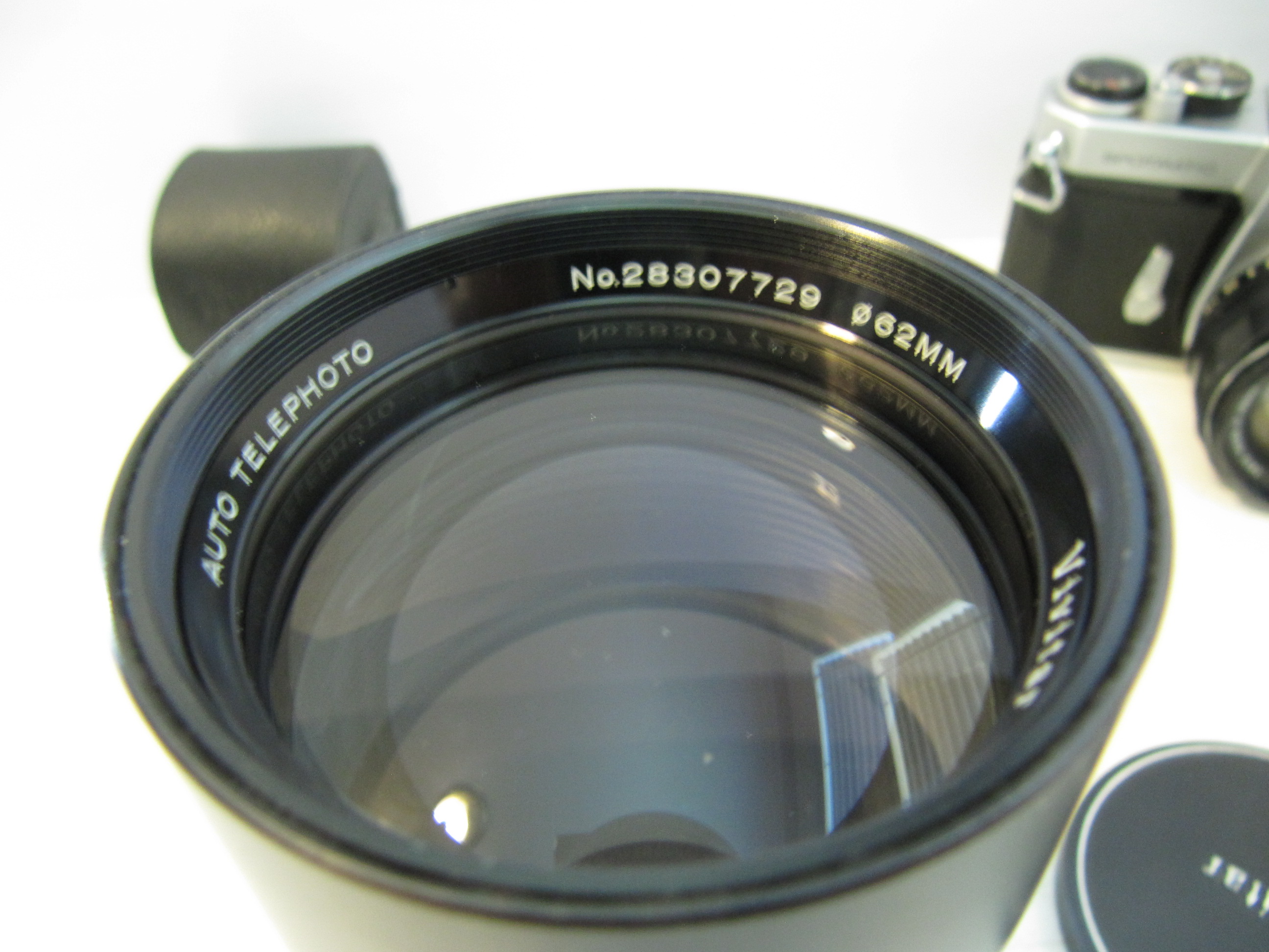 CONDITION: Signs of use and age wear on all. Body is fully functional, viewfinder is clear, and all shutter speeds sound at least ear accurate, however a previous owner has engraved id inside and outside of body. Camera case has considerable wear and repair. 50/1.4 has excellent glass, smooth focus and clean snappy blades. 200/3.5 has nice glass too with minor dust specks, smooth focus and clean snappy blades. Tele converter has clean glass also.