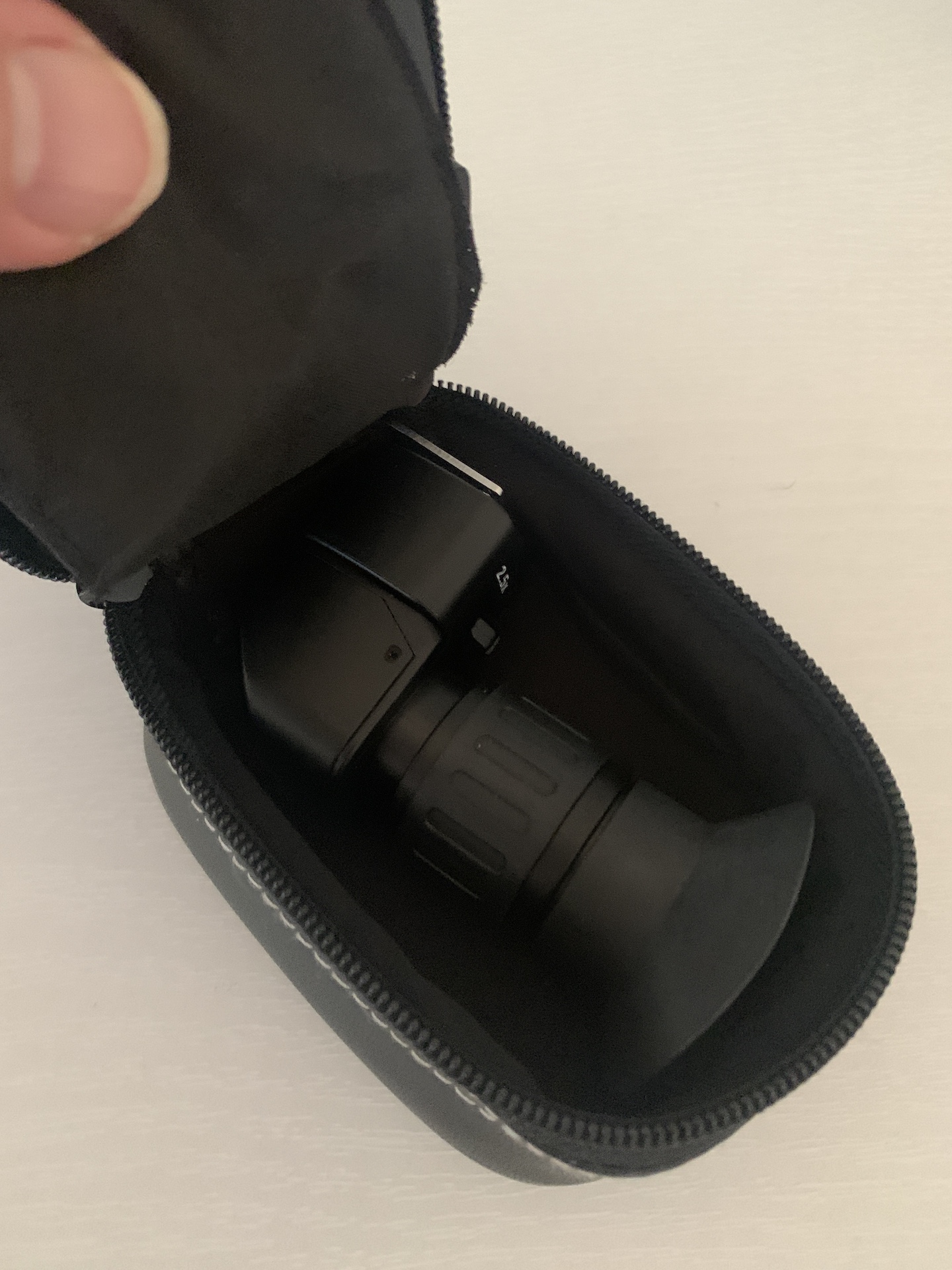 Hoodman H-RAV Universal Right Angle Finder. This is cased and in very good condition. It comes with finder adapters for Canon 18mm, 19mm, and also one called "universal" - these slip over the slotted mounting flange on SLR finder windows. I seem to recall using this briefly on a Canon EOS camera of some sort that I once owned, but I really have no idea what model Canon cameras this is designed to work with, so please understand this or do some research before buying.