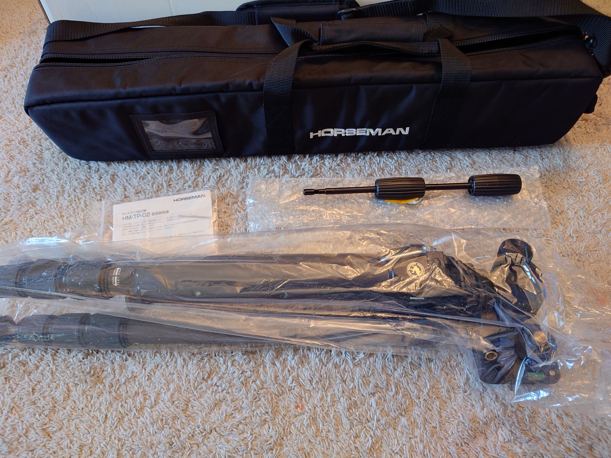 I have an almost brand new heavy duty Made and purchased in Japan, horseman camera tripod, perfect for Largeformat. I saw this in japan, fell in love with it and bought it through a friend. I used it to shoot the last years solar eclipse on a Nikon F5 with 500mm lens and a 2x tele, with excellent results, and it went back into its its box, essentially used once. It comes in its original box, spotless soft case, instructions. I am winding down shooting film and raising cash to pay bills, hence selling this tripod as well, i am not able to find any US listings (there are plenty of Japanese listings) except this one from BHphoto, https://www.bhphotovideo.com/c/product/1362922-REG/horseman_25301_hmtphd02_carbon_fiber_tripod.html