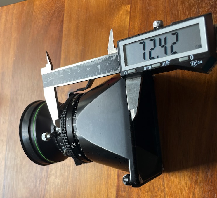 You may know more about this than I do. If so educate me please. I think it's for 612 or 617 Horseman Fotoman Panoramic cameras. Hole is for Copal 0. Since it has f4.5 I assume it's for a Grandagon? $295.