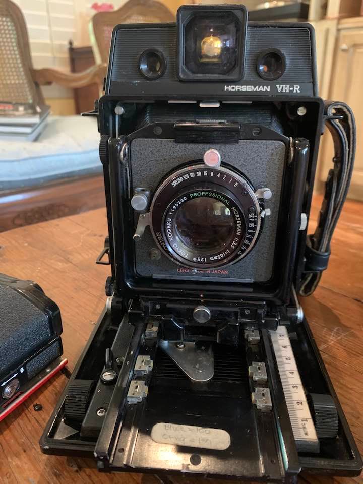 Topcon Horseman VH-R plus 105mm f3.5 lens, (2) film roll backs and more.