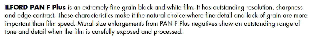 That might range from blatant, like Delta 3200, to rather crisp, like TMax100 and Pan F. In most cases, these are enlarged to less than 8x10.