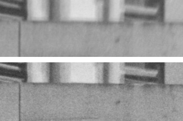 Yes I agree that at your magnification you can see a difference but if for sake of argument this represents a print of his whole negative at say 40 x 60 inches then at considerably lower but still large print size by most standards, the difference may become quite marginal