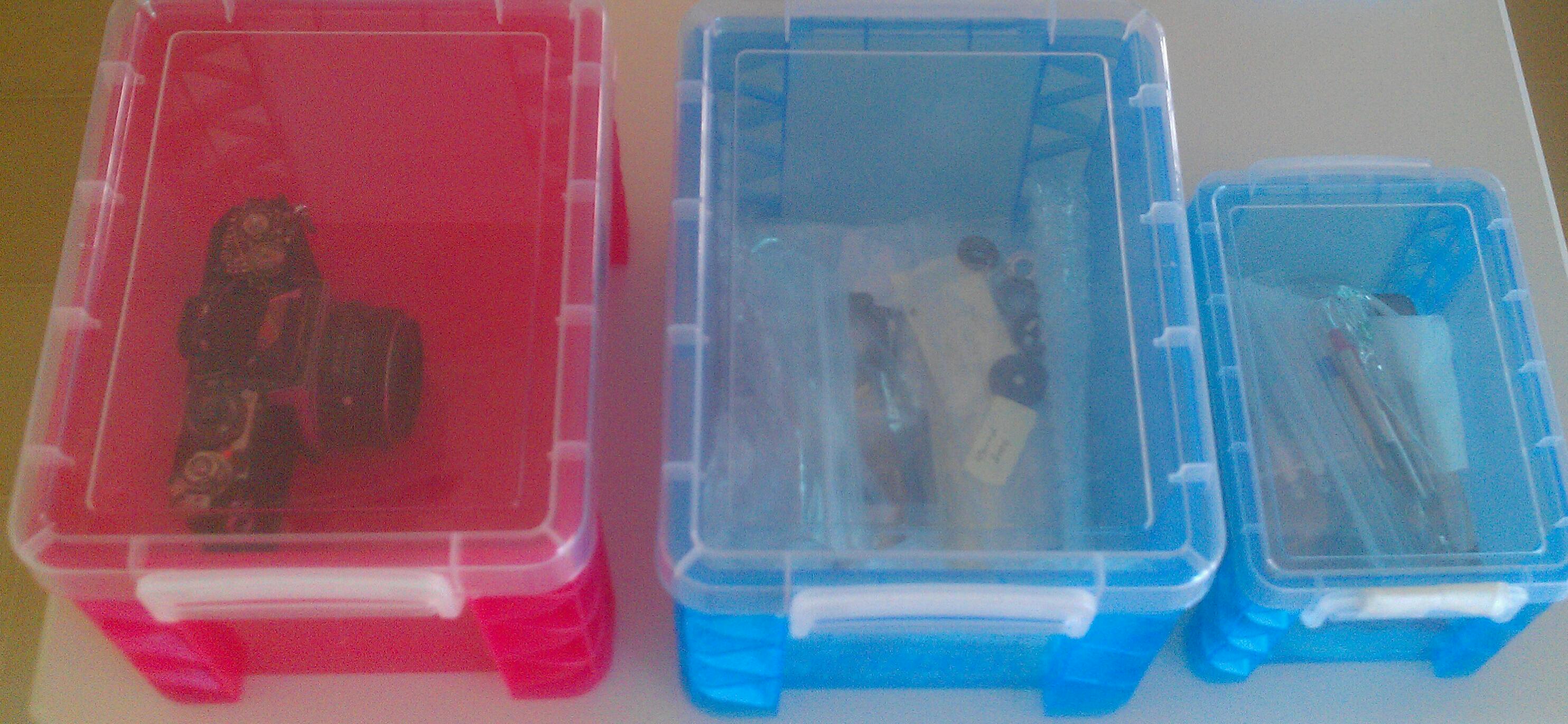 I place all related items in dedicated sealable bags, then everything goes into nice little boxes.
