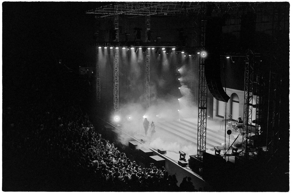 Another recommendation for Kentmere Pan 400, with some examples that might be similar to the OP's use case. Using a lens at or near wide open may contribute to more softness and "glow". I used the Nikkor-S Auto 55mm f/1.2 for these first two examples. In the second, you can see the halation around the ride cymbal.