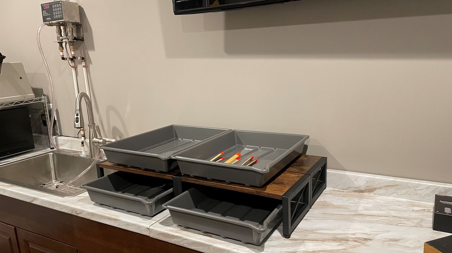 5"x7", 8"X10", 11"x14" trays are no problem but 16"x20" and larger need extra space.