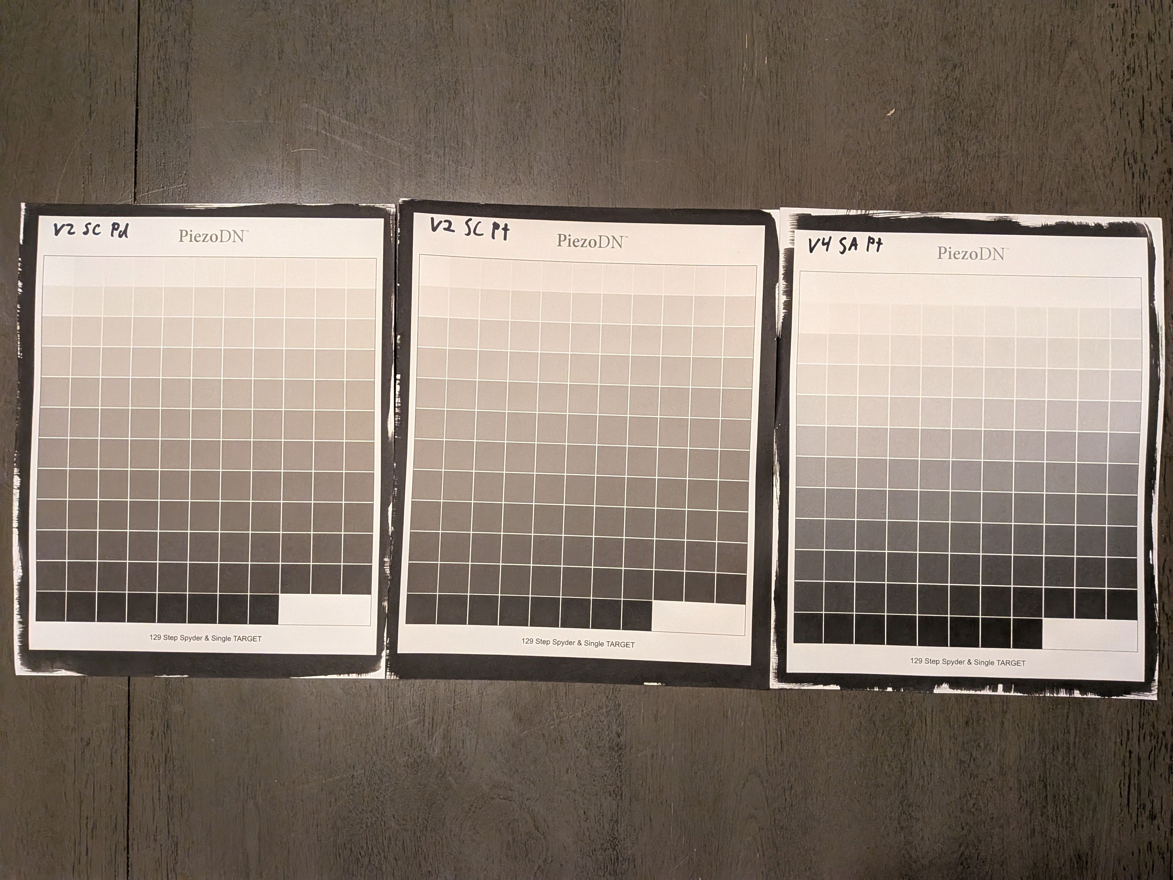 5. (not shown) Sodium acetate prints toned in Pd are a notably different color than sodium acetate prints toned in Pt (brown black vs neutral). I wonder why sodium citrate behaves so differently.