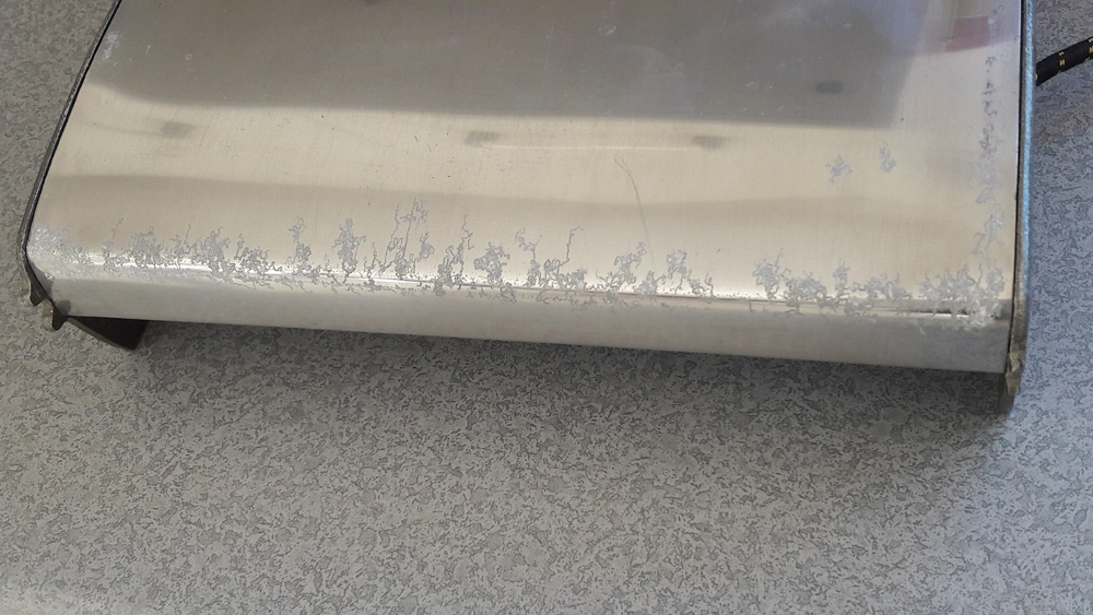 Once the Aluminium starts corroding like that there's little you can do, clean the worst off with wet and dry. Personally I wouldn't use a glazer to dry prints the cover tends to get contaminated.