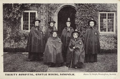 As an aside, it took a little while to find out about that photo on the cover of that book. It's not a picture of people pretending to be witches. The outfits were actually the required "uniform" of residents at Trinity Hospital Castle Rising, a home for unwed and financially bereft women of over 56 in Wales. If you go to their website, you can see that the uniforms are still there - although they don't have to wear them.