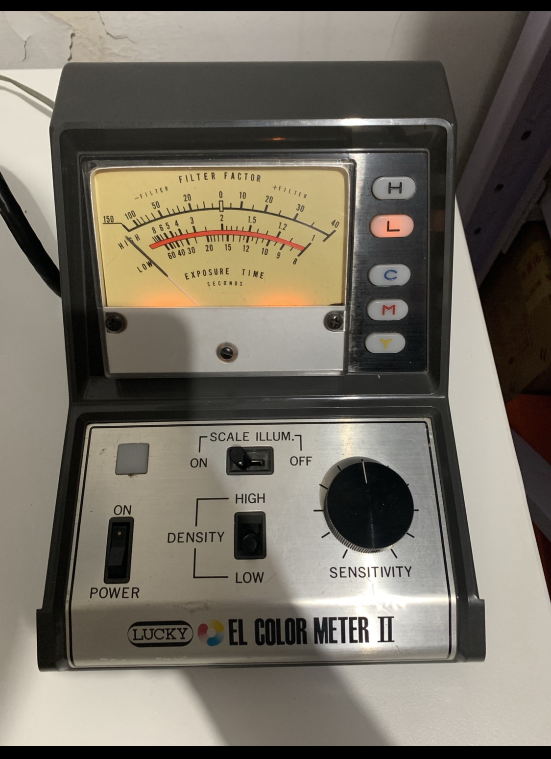I know most color analyzers have similar work flow (make perfect print first, analyze the perfect print and save CMY values into analyzer 's memory as a reference). But this one comes with a "Sensitivity " knob and "Density High & Low" switch.