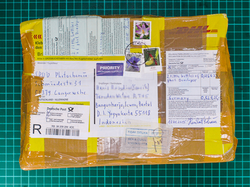 I'm sure the film isn't accidentally pre-fixed before being developed.. it might the developer gone bad in the delivery process, its quite long trip from Germany to Java..