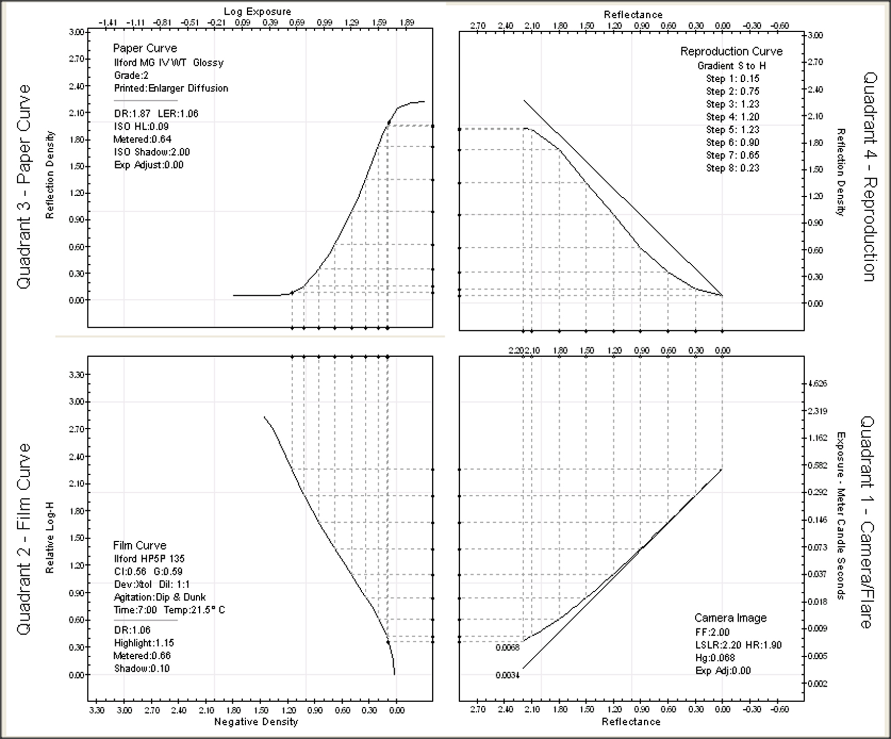 In this example processed in Xtol, because of the short toe and the slight shouldering, the density range didn't change with over exposure. Generally, moving off the toe will increase the density range slightly with short toed films, and more with long toed films.